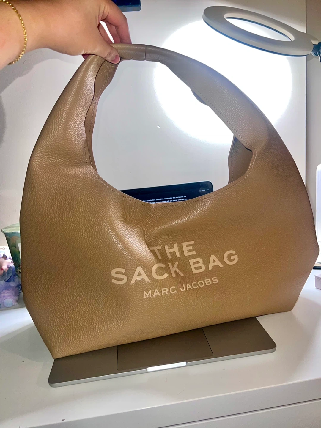 This is The Sack Bag from Marc Jacobs. It's made from soft leather and has a spacious interior. A stylish everyday tote!