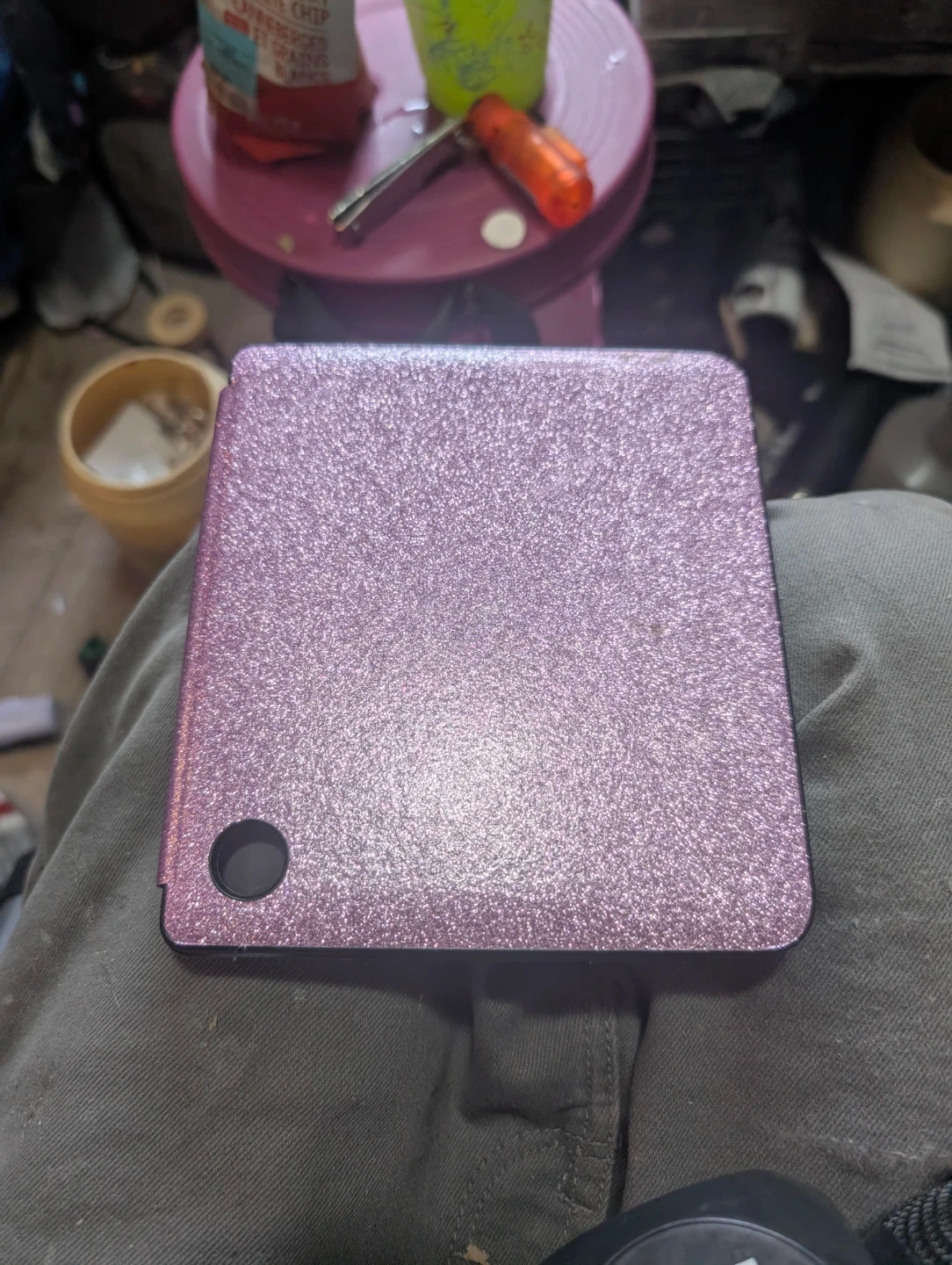 This kindle case offers protection, a sparkly purple glitter finish, a booklike foldable design for easy access to your reader and a textured interior to prevent slipping.