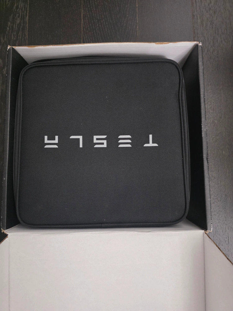 This is a Tesla Mobile Connector. It comes with a travel bag and all original components. It's perfect for charging your Tesla on the go!