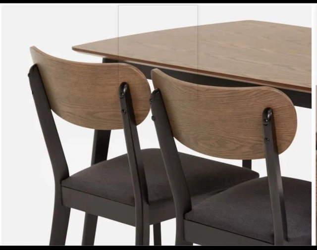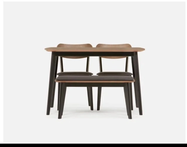 This Structube Tavel dining set includes a table, two chairs, and a bench, perfect for a small dining space. The set is in used condition, gently used but well cared for. Table dimensions: 47.2" (120 cm) length x 29.5" (75 cm) width. Chair dimensions: 17.7" (45 cm) width x 31.4" (80 cm) height. Bench dimensions: 35" (89 cm) length x 18.5" (47 cm) height. This set is a fantastic find for anyone looking to add a touch of modern elegance to their home! This dining set is still available.