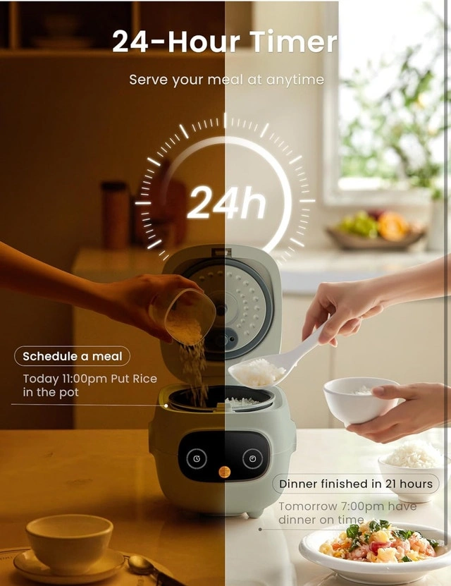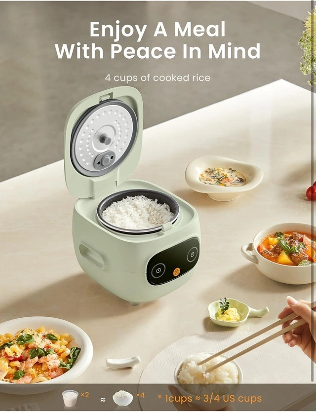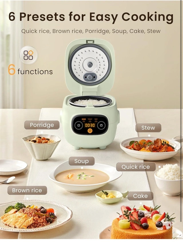 Selling a mint green Comfee rice cooker that can cook up to 4 cups of rice. It features six presets for different meals, including quick rice, brown rice, porridge, soup, cake, and stew, plus a 24-hour timer. It's in excellent, like-new condition. This is a great little kitchen helper! Price is $40 CAD, but I'm open to reasonable offers. If you're seeing this ad, it's still available.