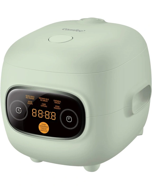 Selling a mint green Comfee rice cooker that can cook up to 4 cups of rice. It features six presets for different meals, including quick rice, brown rice, porridge, soup, cake, and stew, plus a 24-hour timer. It's in excellent, like-new condition. This is a great little kitchen helper! Price is $40 CAD, but I'm open to reasonable offers. If you're seeing this ad, it's still available.