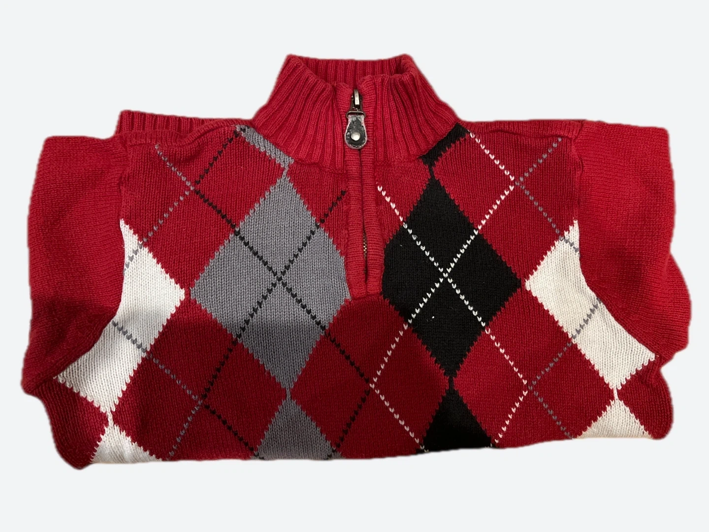This red zip-up sweater from The Children's Place features a classic argyle pattern. It's a size M/M, which fits like a 7/8.