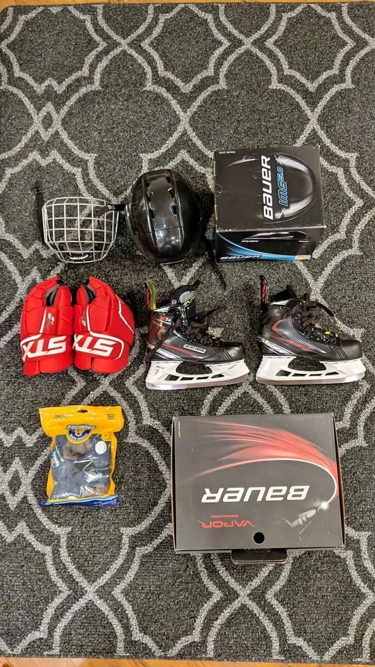 Bauer helmet with face guard, STX hockey gloves, Bauer hockey skates vapor with Howie's skate guards. Feel free to message if you have any questions! Price negotiable