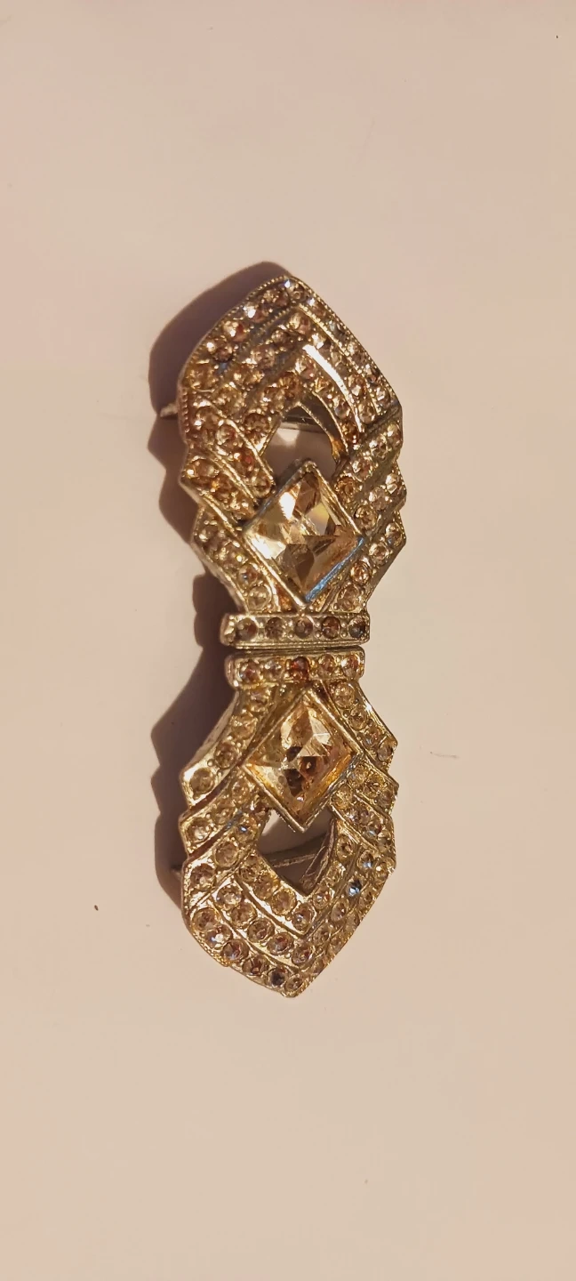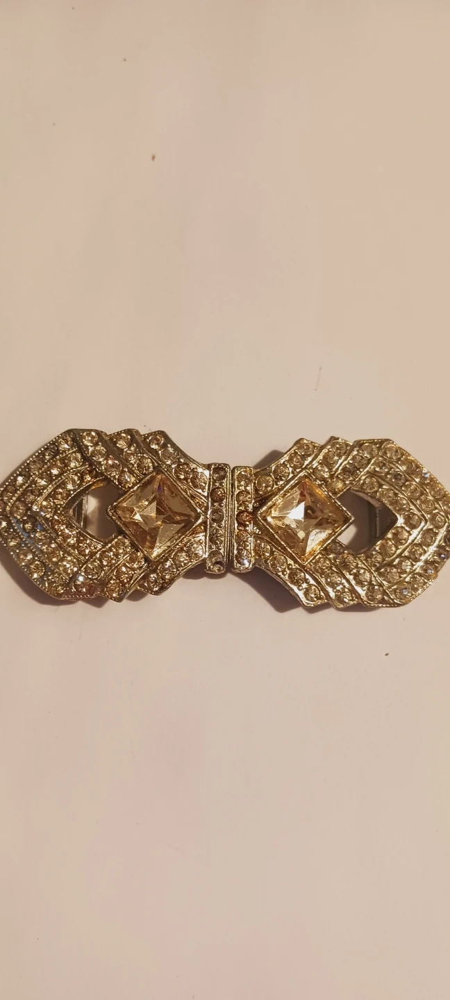 Beautiful vintage art deco rhinestones elegant belt buckle.It's adorned with clear rhinestones and two square-cut amber-colored stones. The metal appears to be silver toned. Excellent condition. 3"×1.2" ALL MY PRICES ARE NEGOTIABLE !!
