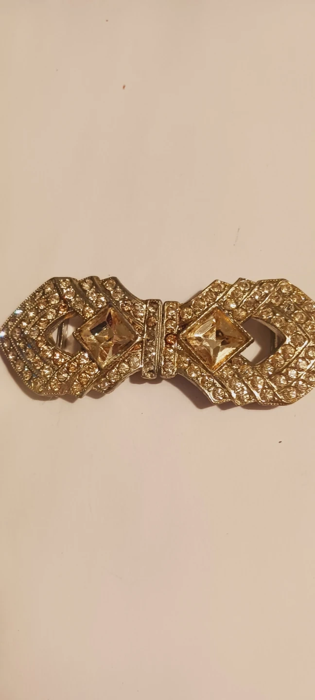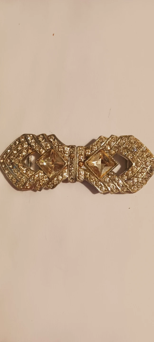 Beautiful vintage art deco rhinestones elegant belt buckle.It's adorned with clear rhinestones and two square-cut amber-colored stones. The metal appears to be silver toned. Excellent condition. 3"×1.2" ALL MY PRICES ARE NEGOTIABLE !!