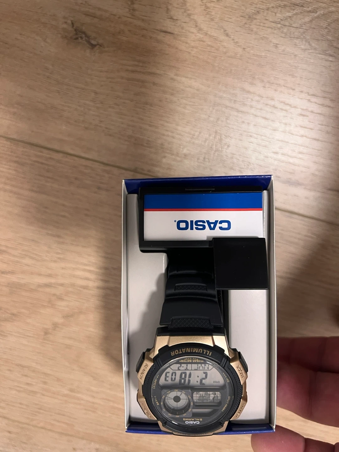 Casio watch in gold and black. It features an illuminator and comes with its original box. This watch is a great choice for everyday wear.