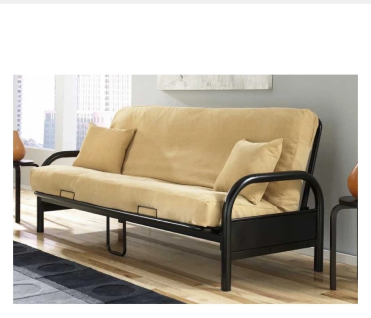 This Iron futon frame looks great in just about any room in the house with its classic black frame.