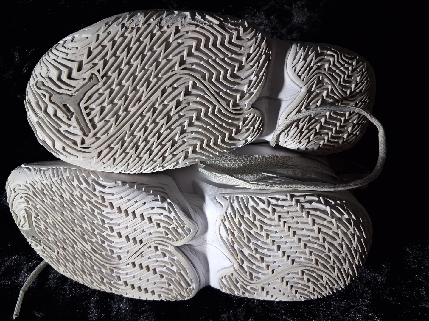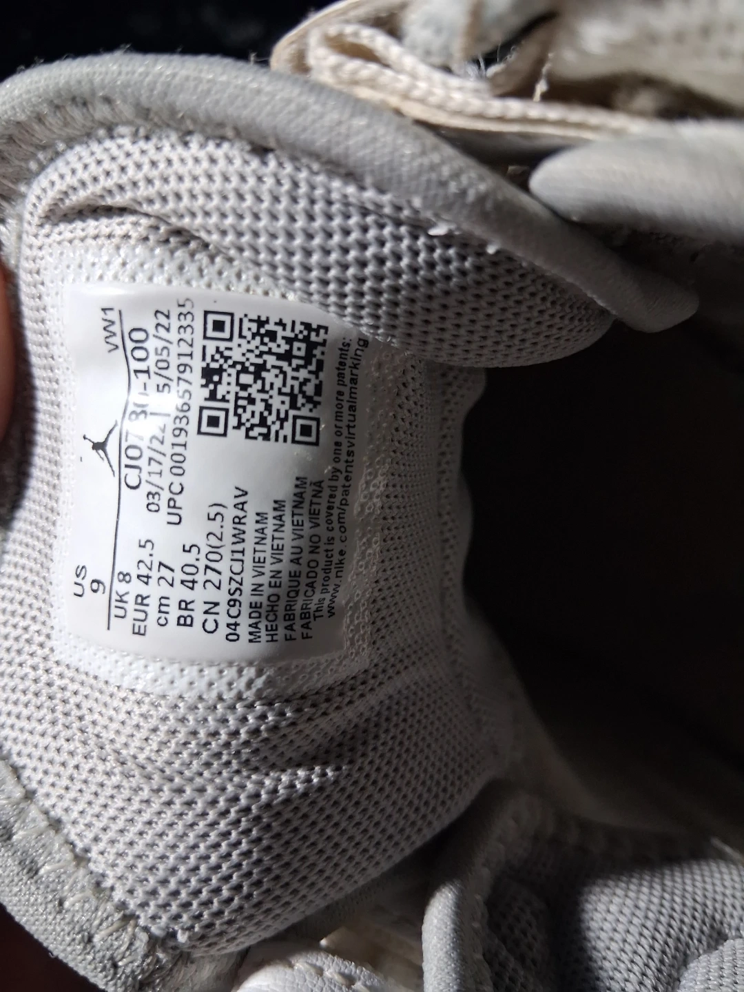 Jordan Westbrook One Take II men's basketball shoes. White and grey colorway. Size 9 US. Made in Vietnam. Features a textile and synthetic upper. These shoes are designed for basketball performance.
