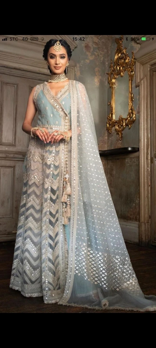 Original Sobia Nazir Embroidered dress with full sleeves in size small to medium . Features intricate threadwork and mirror embellishments. Perfect for special occasions and festivities!