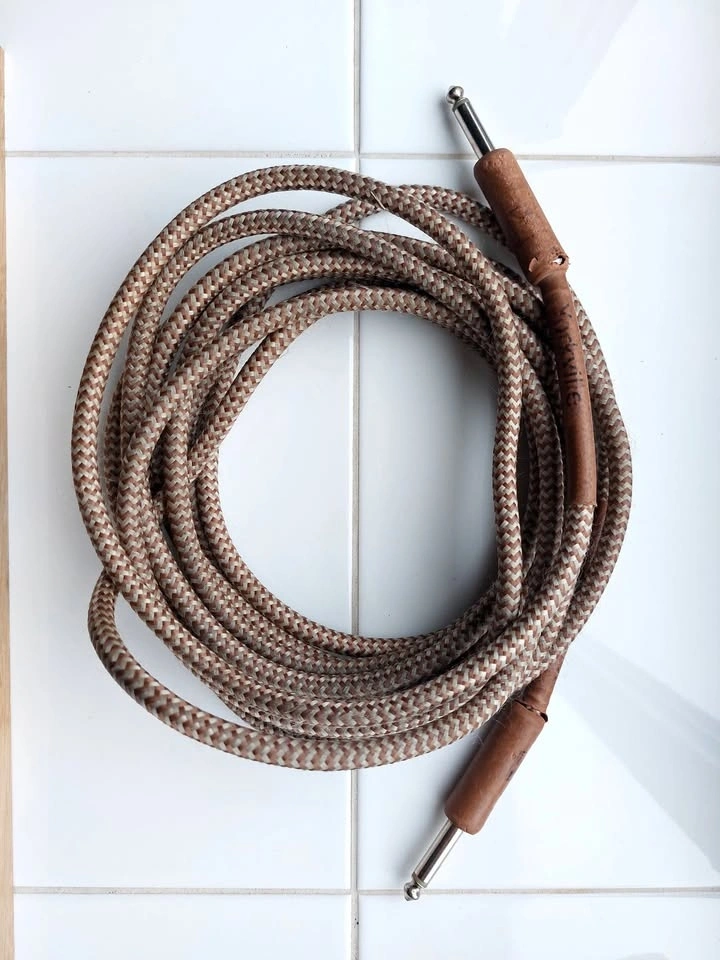 This is a 15ft long, 1/4” TS Male-Male guitar cable with a brown and white braided exterior and straight connectors on both ends. It's a Yorkville Sound “Standard Series Vintage Instrument Cable”. The brown heatshrink around each connector is a bit worn, and there's some minor fraying of the fabric exterior, but the cable works just fine! I'm downsizing and don't need a cable this long. Pickup near Fraser St and 20th Ave.