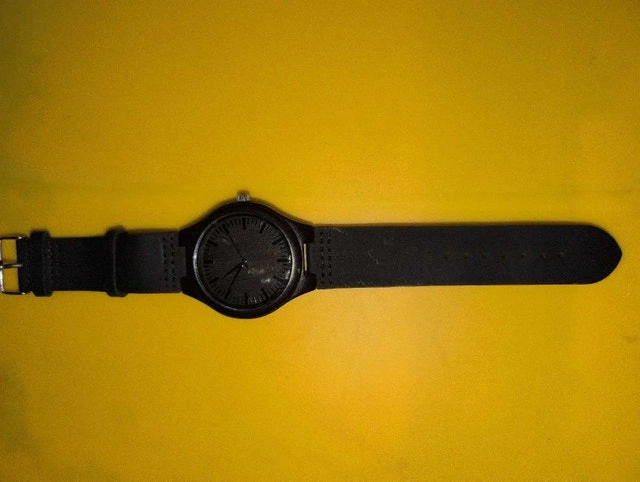 This unique wooden watch makes a stylish and sentimental gift for a father, featuring an engraved message on the back. The watch is in good condition, with a sleek black design and a comfortable leather strap. If the ad is still up, the watch is still available for purchase.