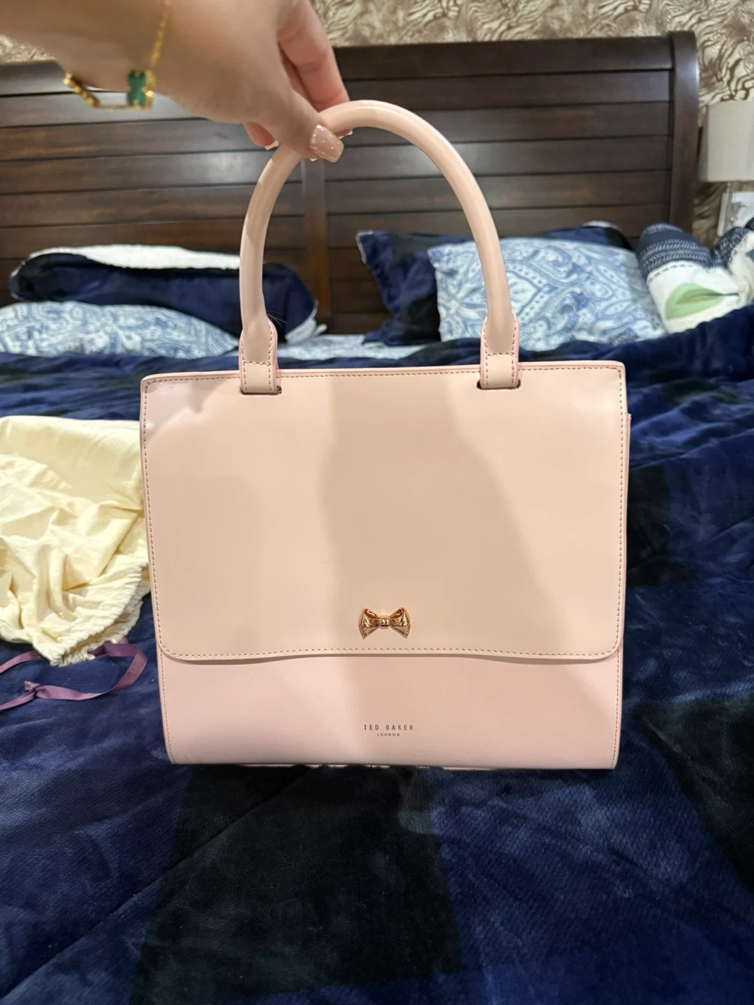 Lovely pink Ted Baker handbag. It's a stylish accessory with a charming bow detail on the front. Comes with its dust bag for protection. Perfect for adding a pop of colour to any outfit! Never used.