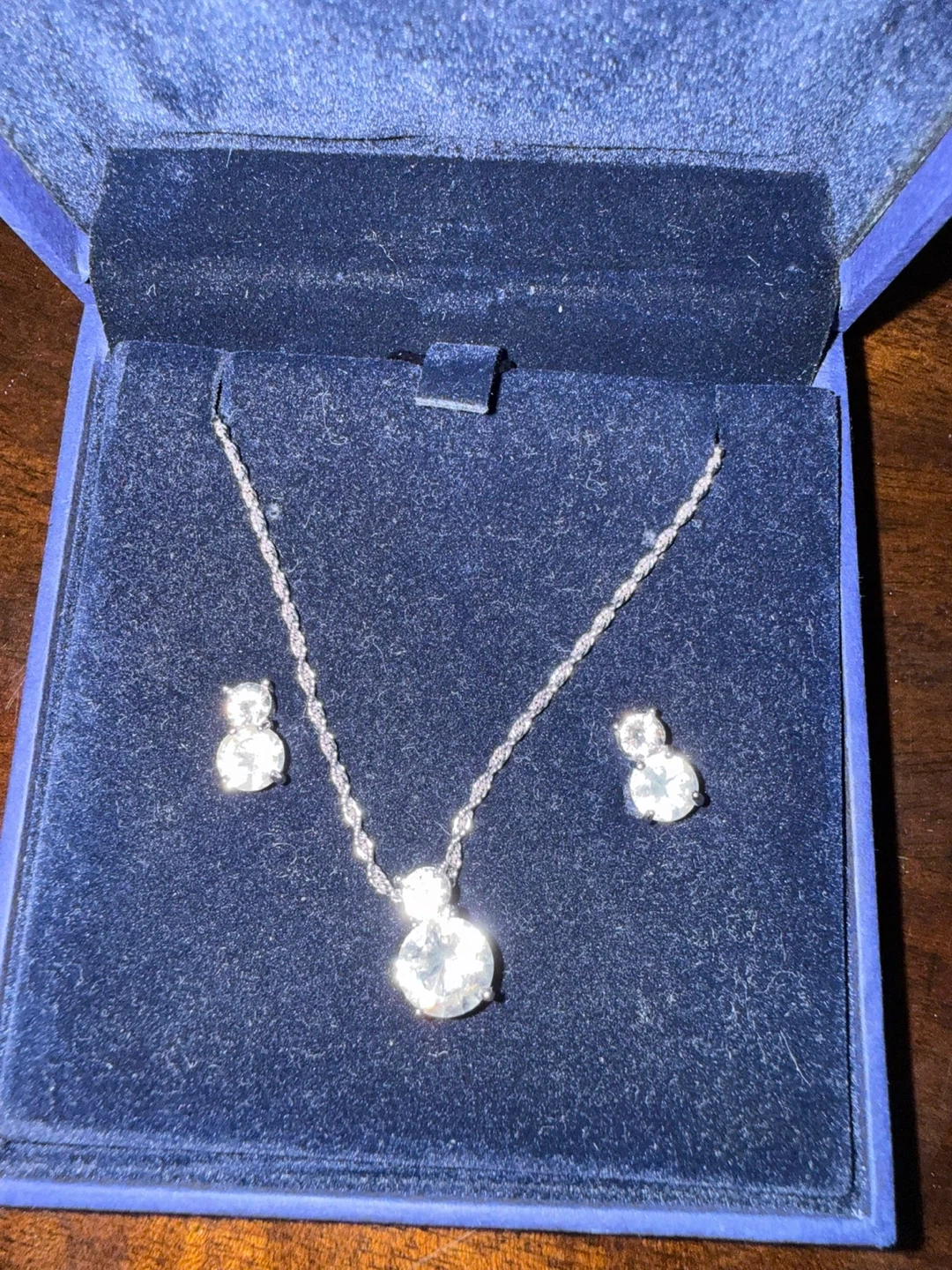 This is a Swarovski necklace and earring set. It comes with the original box.never used.