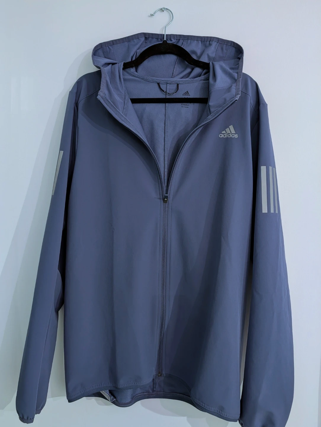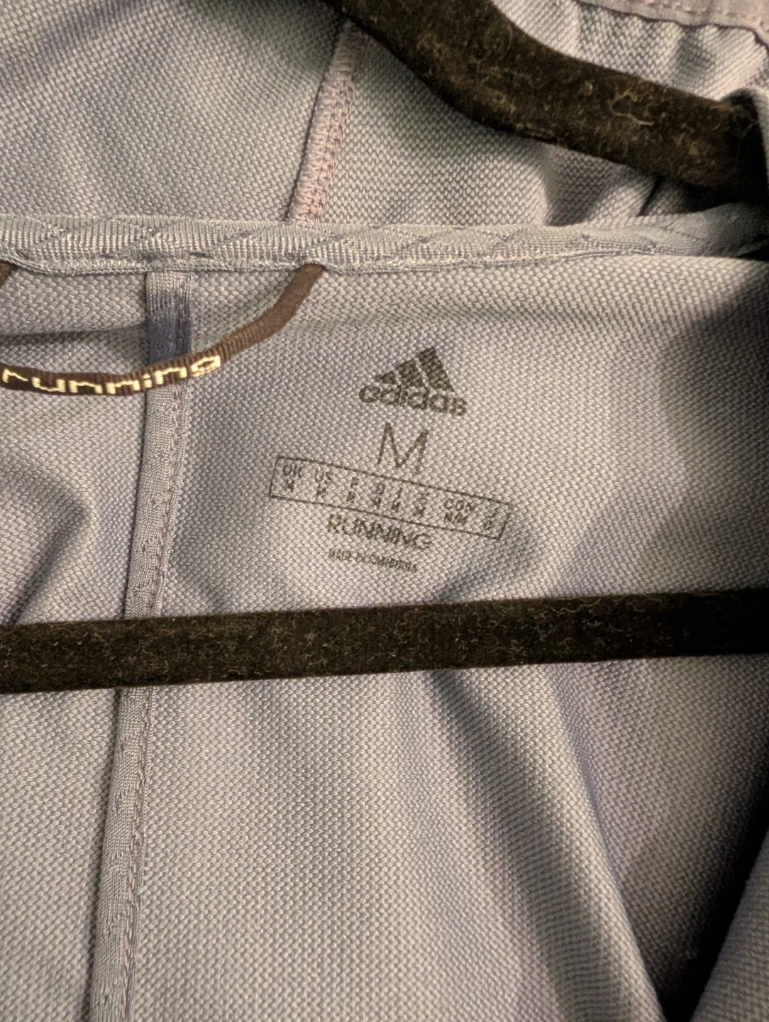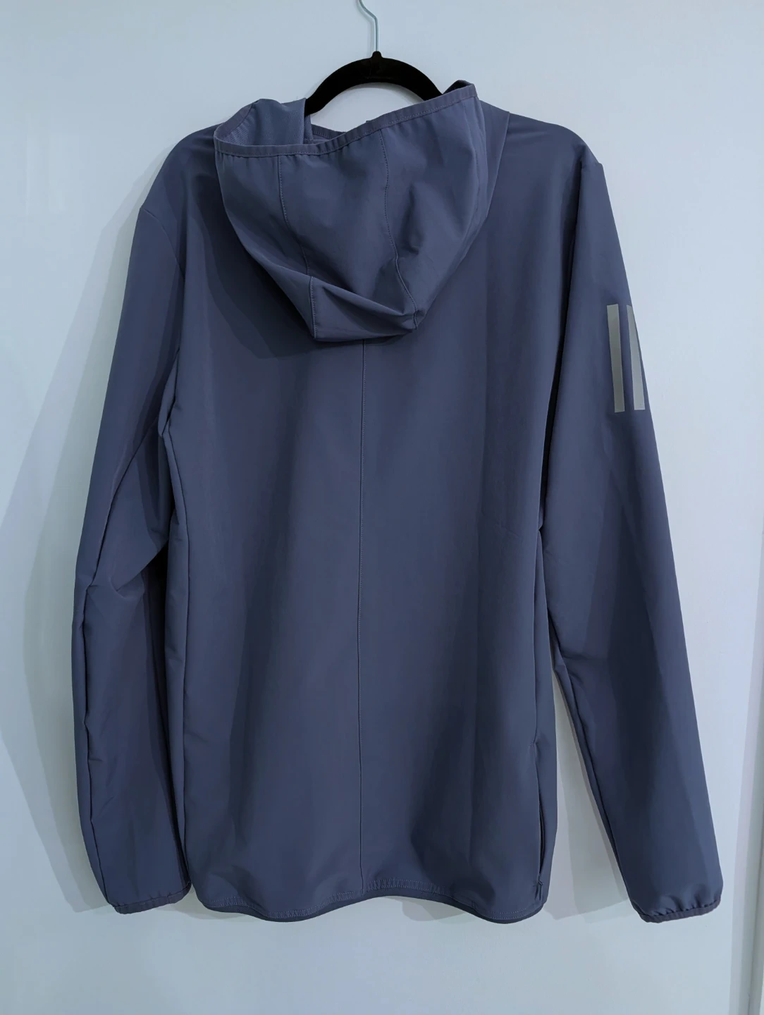 Greyish blue Adidas running jacket in size Medium, but fits like a Large.