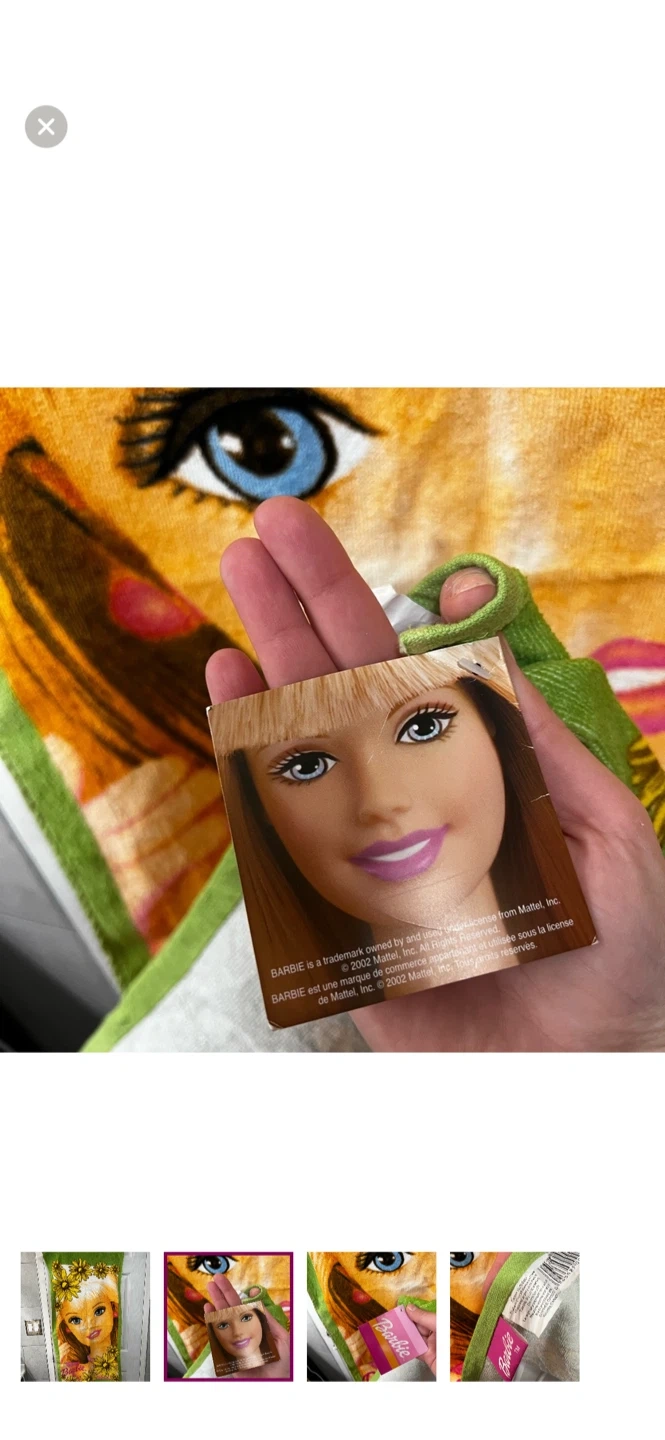 Buy & SellVintage Barbie Beach TowelVintage Barbie Beach Towel$20Fun Barbie beach towel. Made of 100% cotton. Perfect for pool days or trips to the beach!ConditionNewWHERE TO MEETCheck LocationView MapSELLERLenaThornhill S14316 reviews0 chats·1 favorites·5 viewsSEND CHAT TO SELLERHi Lena! I’m interested in your listing.Hi Lena! I’m interested in your listing.Get the Karrot app to chatSign In to chat