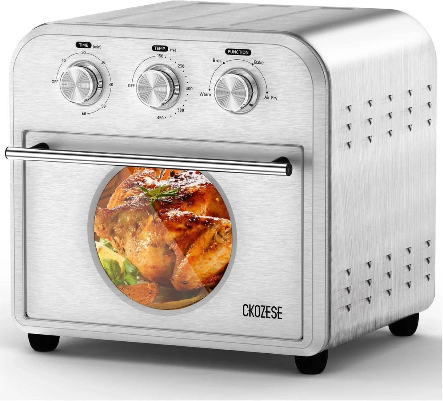 Cater to Family Needs: Featuring a 14QT capacity and 3-layer even cooking, this toaster oven fryer can accommodate up to 4 slices of bread, a 9-inch pizza, or 700g of chicken wings.