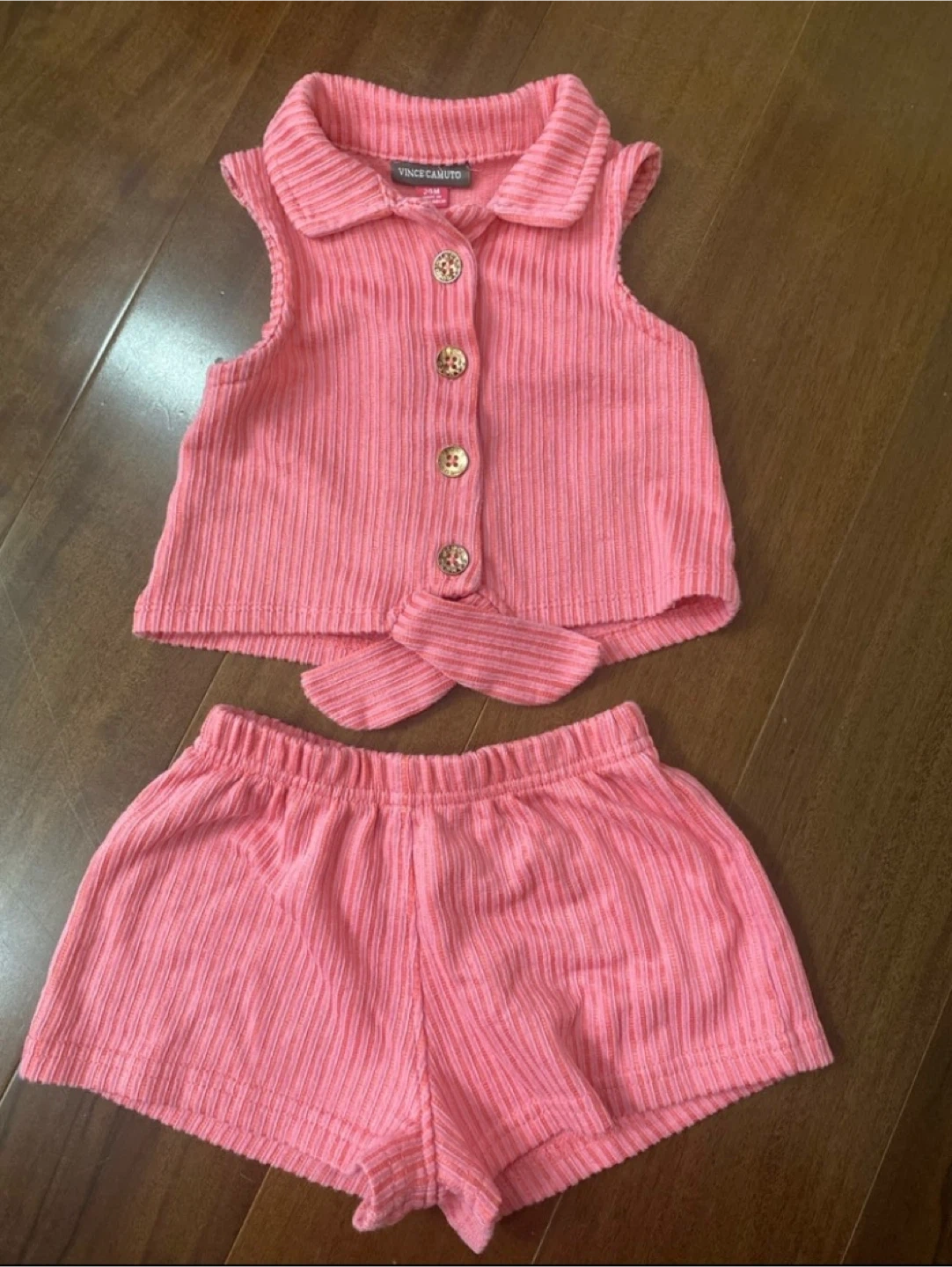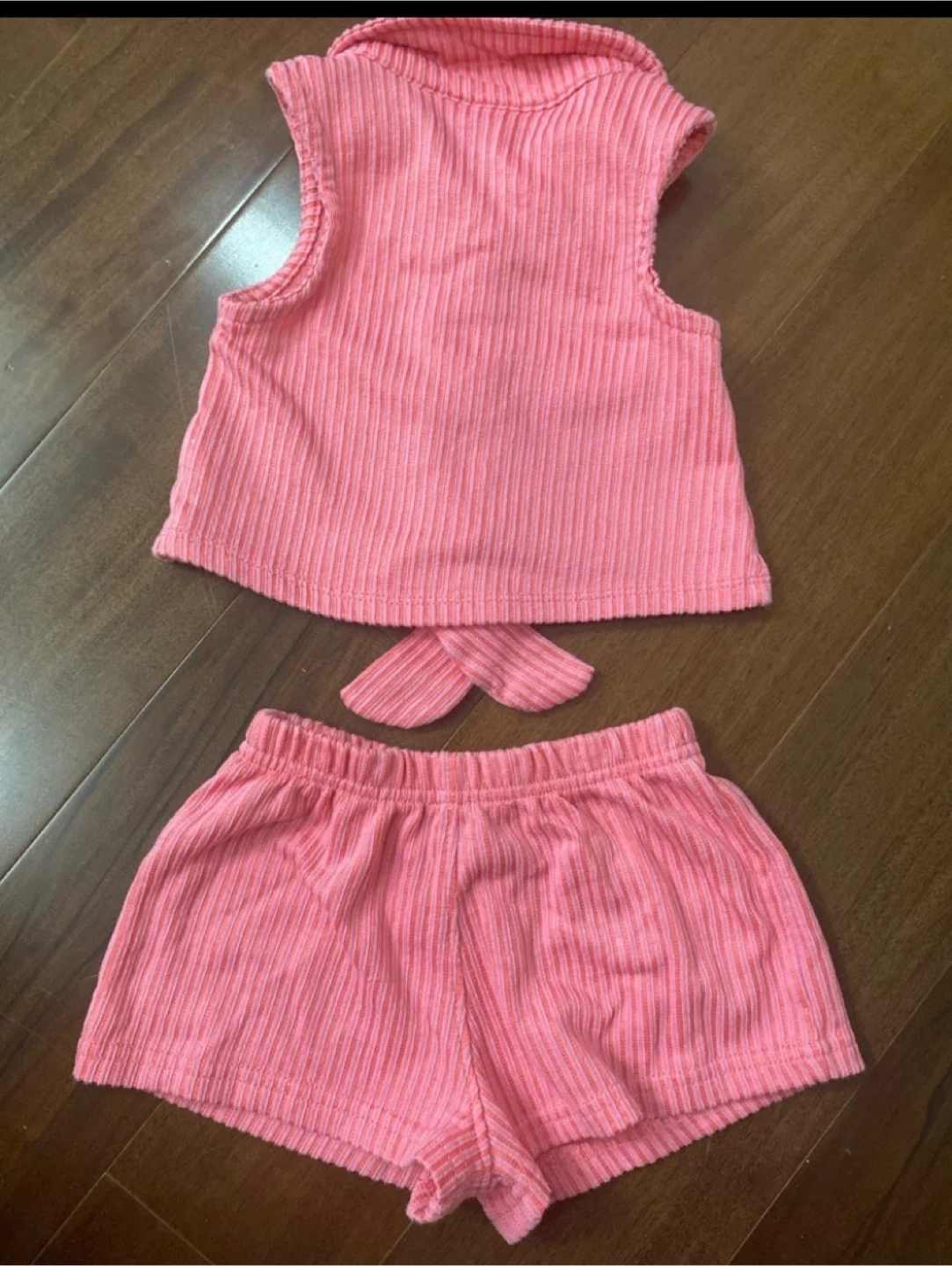 It's a sleeveless collared top with button closure and matching shorts. Perfect condition.