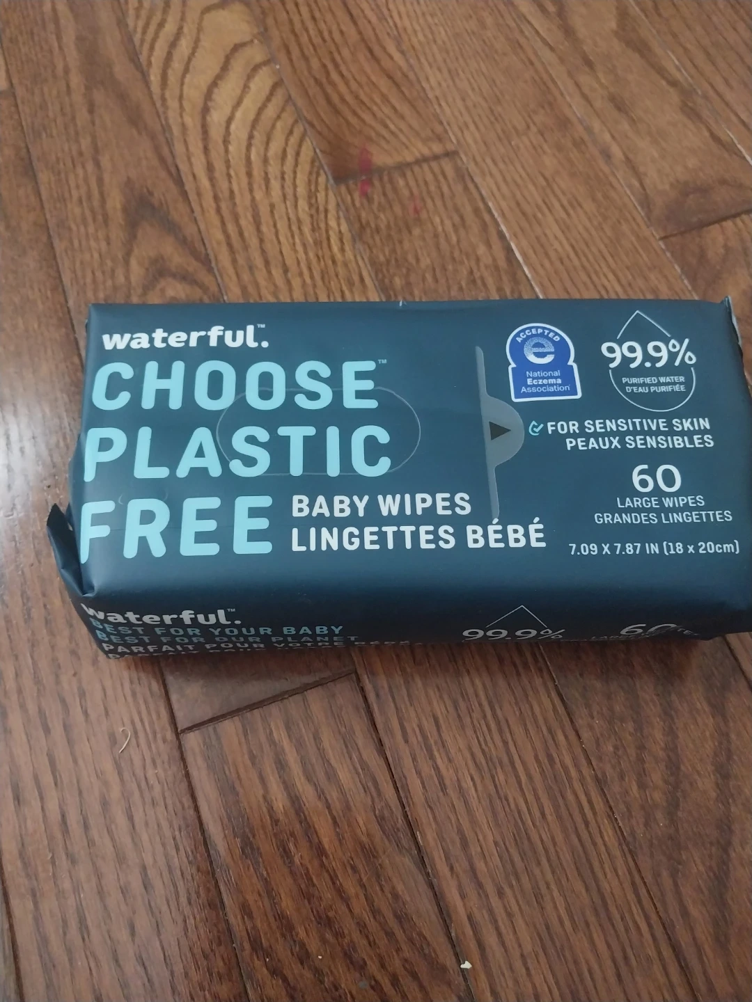 Waterful baby wipes come in a pack of 60 large wipes. They're made with 99.9% purified water and are accepted by the National Eczema Association. These wipes are suitable for sensitive skin. They measure 7.09 x 7.87 inches. 4 packed each$4 pickup only Markham and Denison