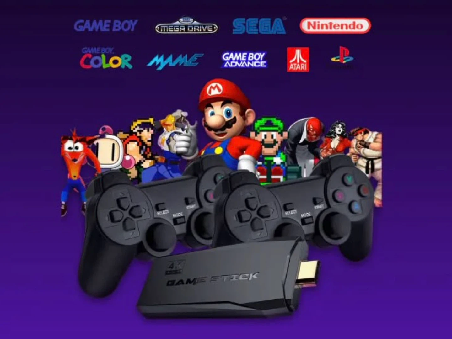 Retro Gaming Console, 20,000+ Retro Game Stick, 27 Emulators, 4K HD TV Gaming Stick, Built-in Classic Video Games, Plug & Play Game Console for TV with 2 Wireless Controllers