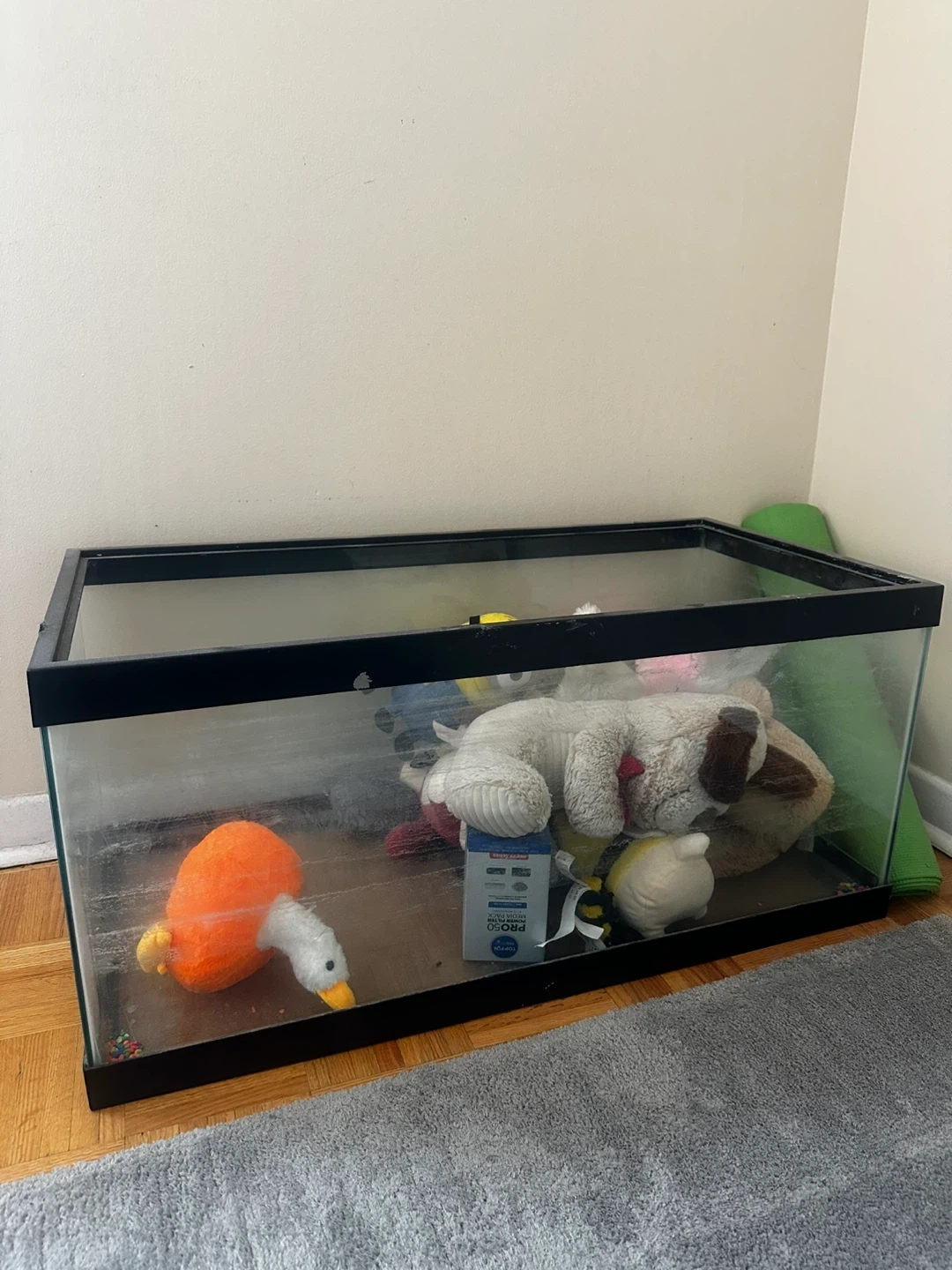 I have a 40 gallon fish tank (used) - I’m just using it for storage for the toys at the moment but obviously the stuff inside the tank is not included.