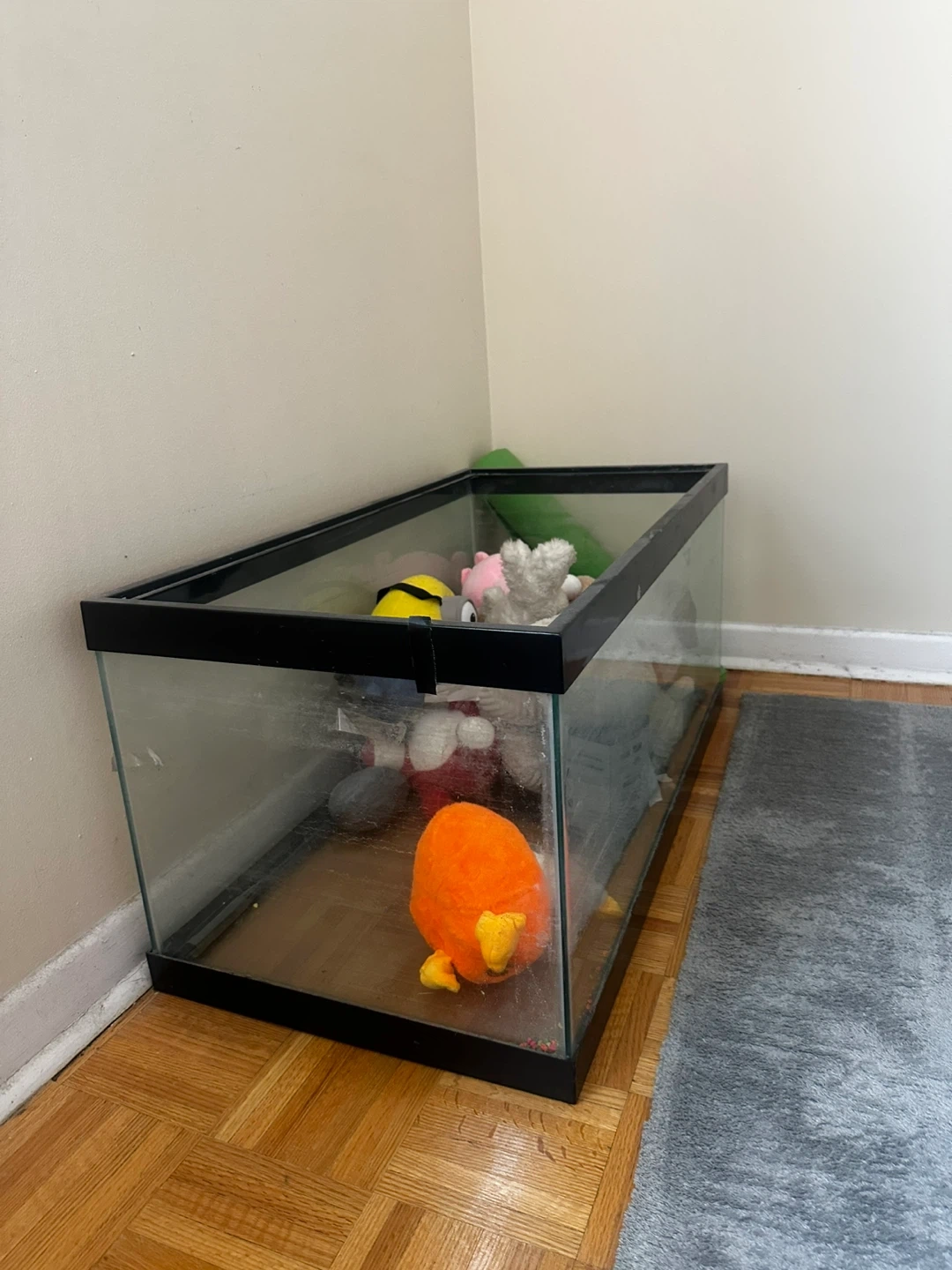 I have a 40 gallon fish tank (used) - I’m just using it for storage for the toys at the moment but obviously the stuff inside the tank is not included.