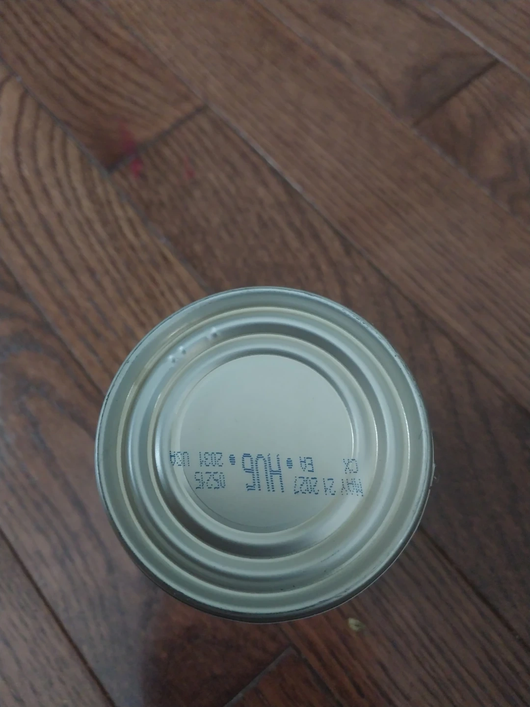 A can of Campbell's Condensed Vegetable soup. It's a savoury blend of vegetables in a hearty broth. This soup's expiry date is May 21, 2031.