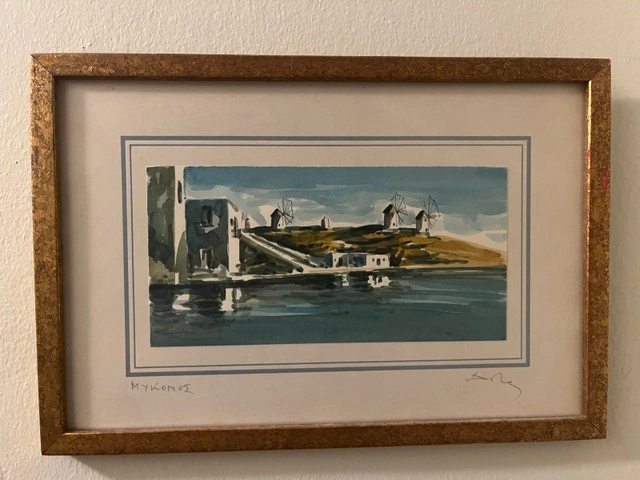 Two Framed Watercolour Paintings of Greece, Mykonos
