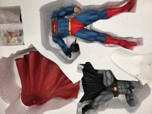 Authentic DC Direct Superman vs Batman EXCLUSIVE statue featuring the iconic clash between two legendary DC heroes. This highly detailed cold-cast resin diorama captures a classic confrontation with dynamic sculpting and dramatic poses. This is the exclusive edition, harder to find than the standard release. Includes the original box and factory styrofoam inserts.