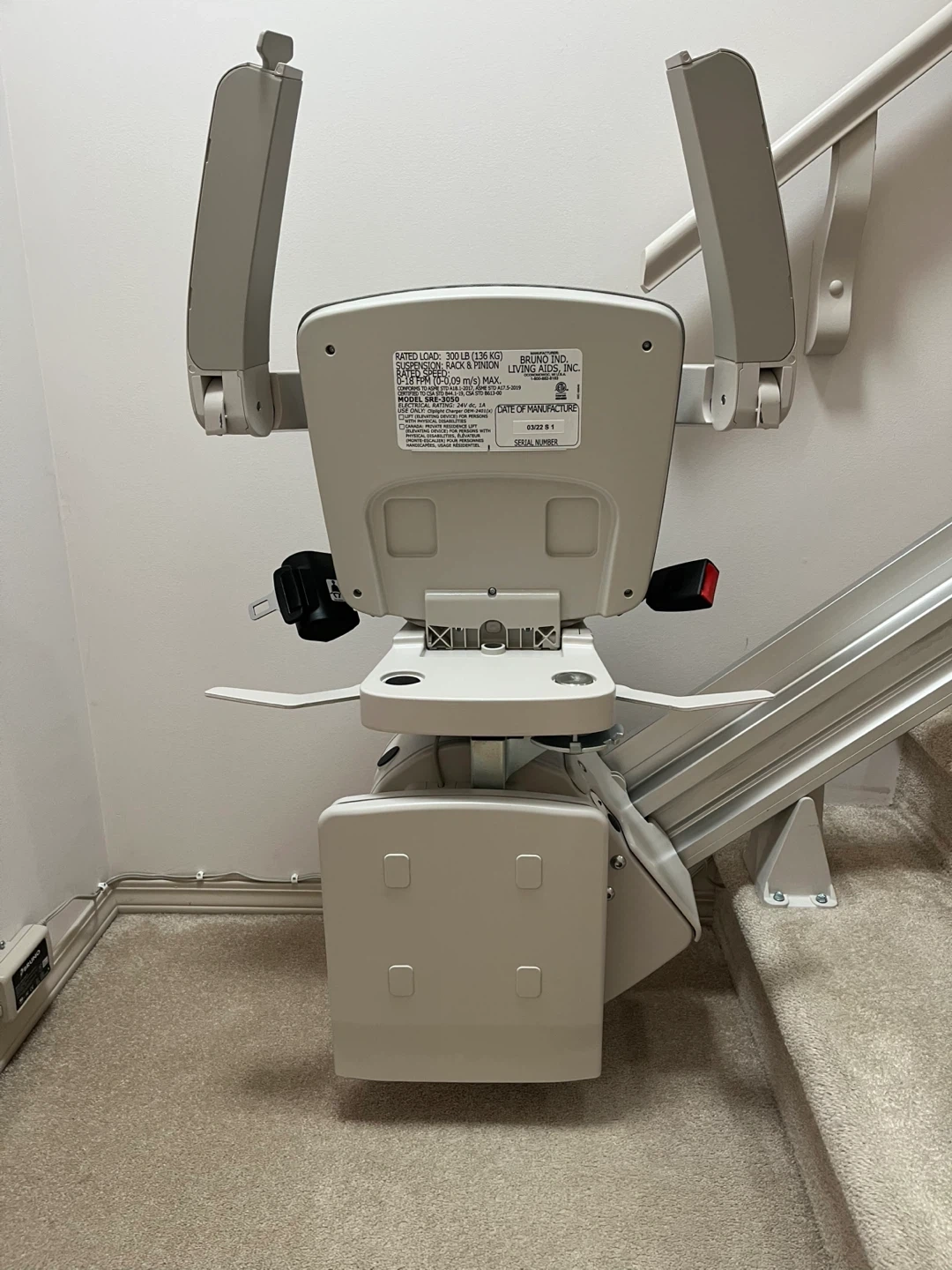 This Bruno stair lift is a model SRS-3050 and was only used for about 15 months.