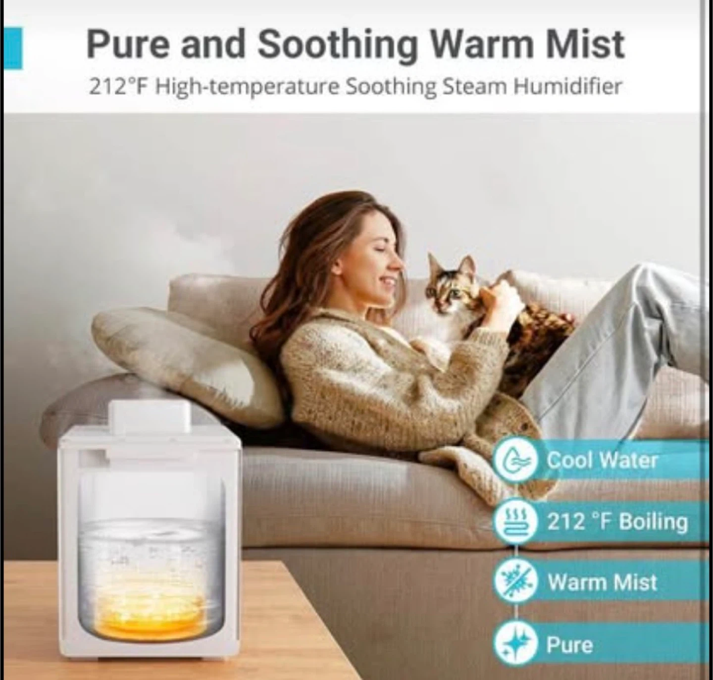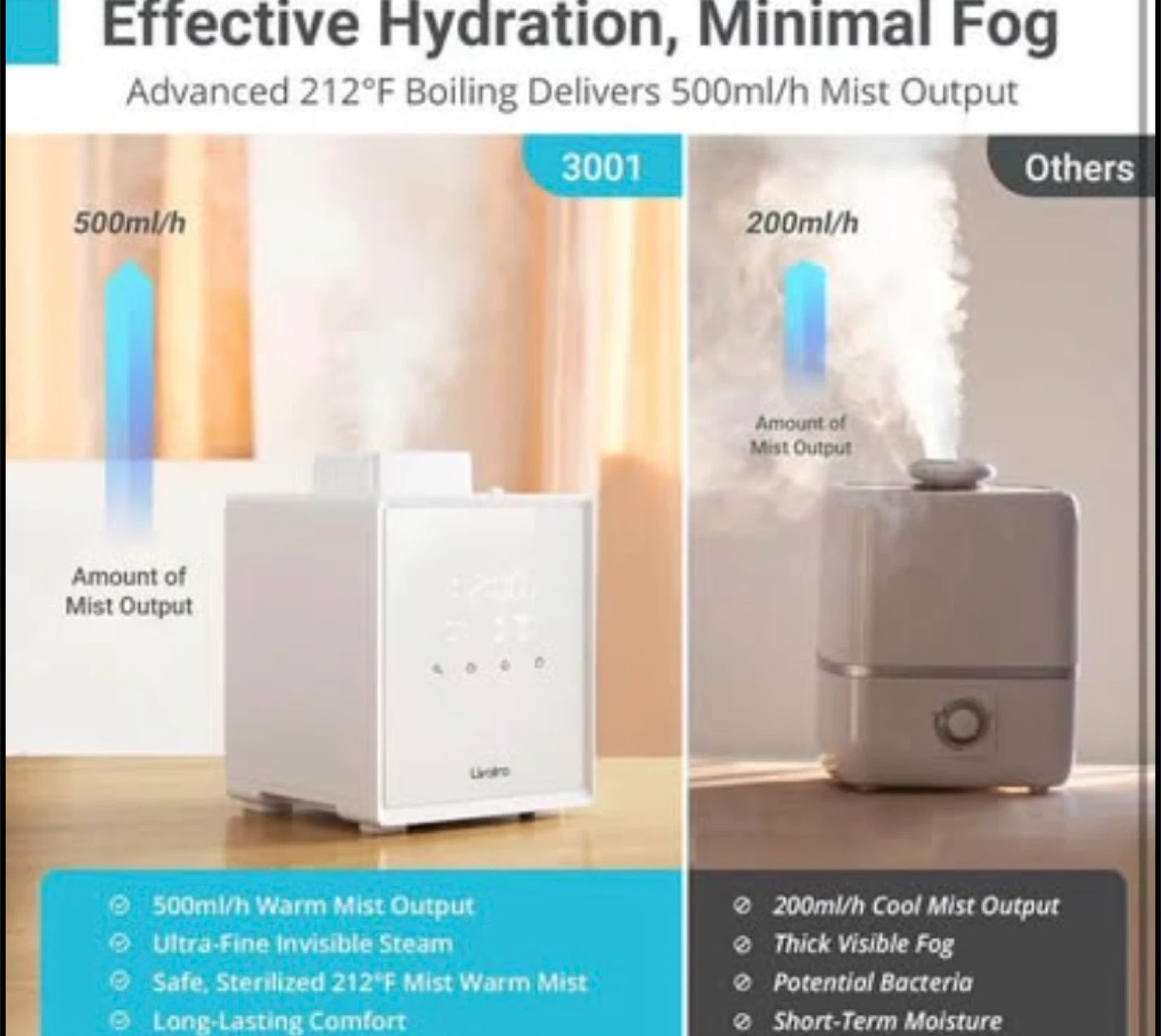 3L Stainless Steel Warm Mist Humidifier with Easy Clean and Warm Steam Function, Healthy Air Mist Humidifiers for Bedroom Living Room, with Sleep Mode and Auto-off Setting