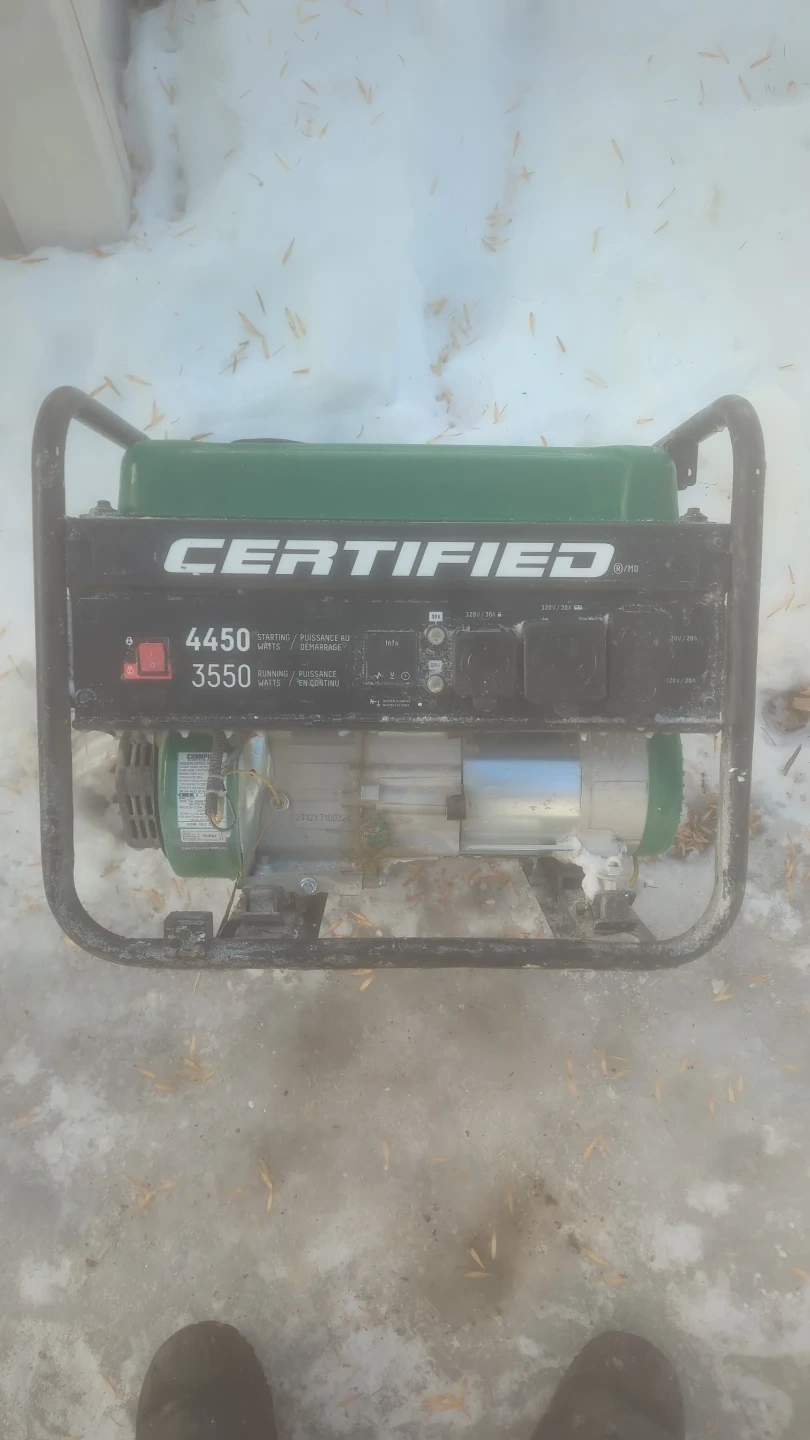 This is a CERTIFIED generator with 4450 starting watts and 3550 running watts. It's great for powering essential appliances during outages. It has 120V/20A and 120V/30A outlets.