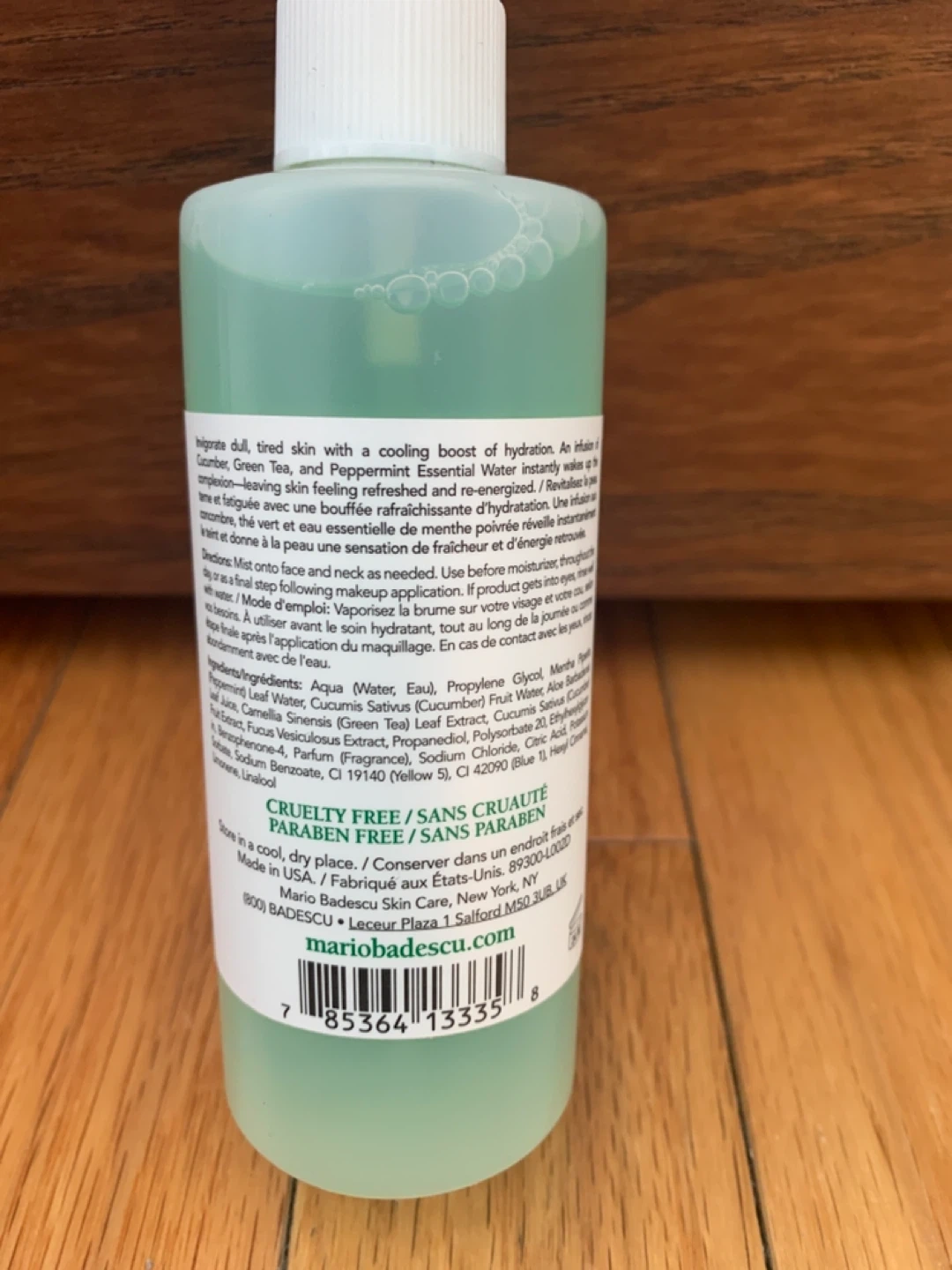 This facial spray delivers a boost of hydration with cucumber, green tea, and peppermint essential water. It's formulated to refresh and re-energize the skin.