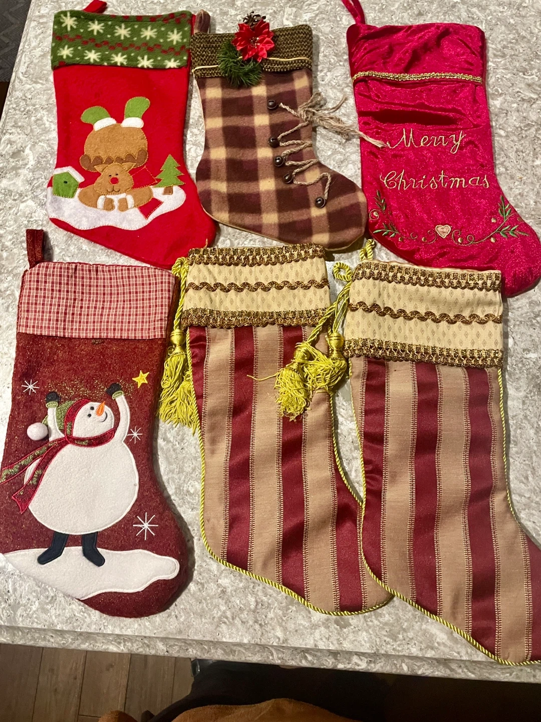 Assorted Christmas Stockings and Decorations