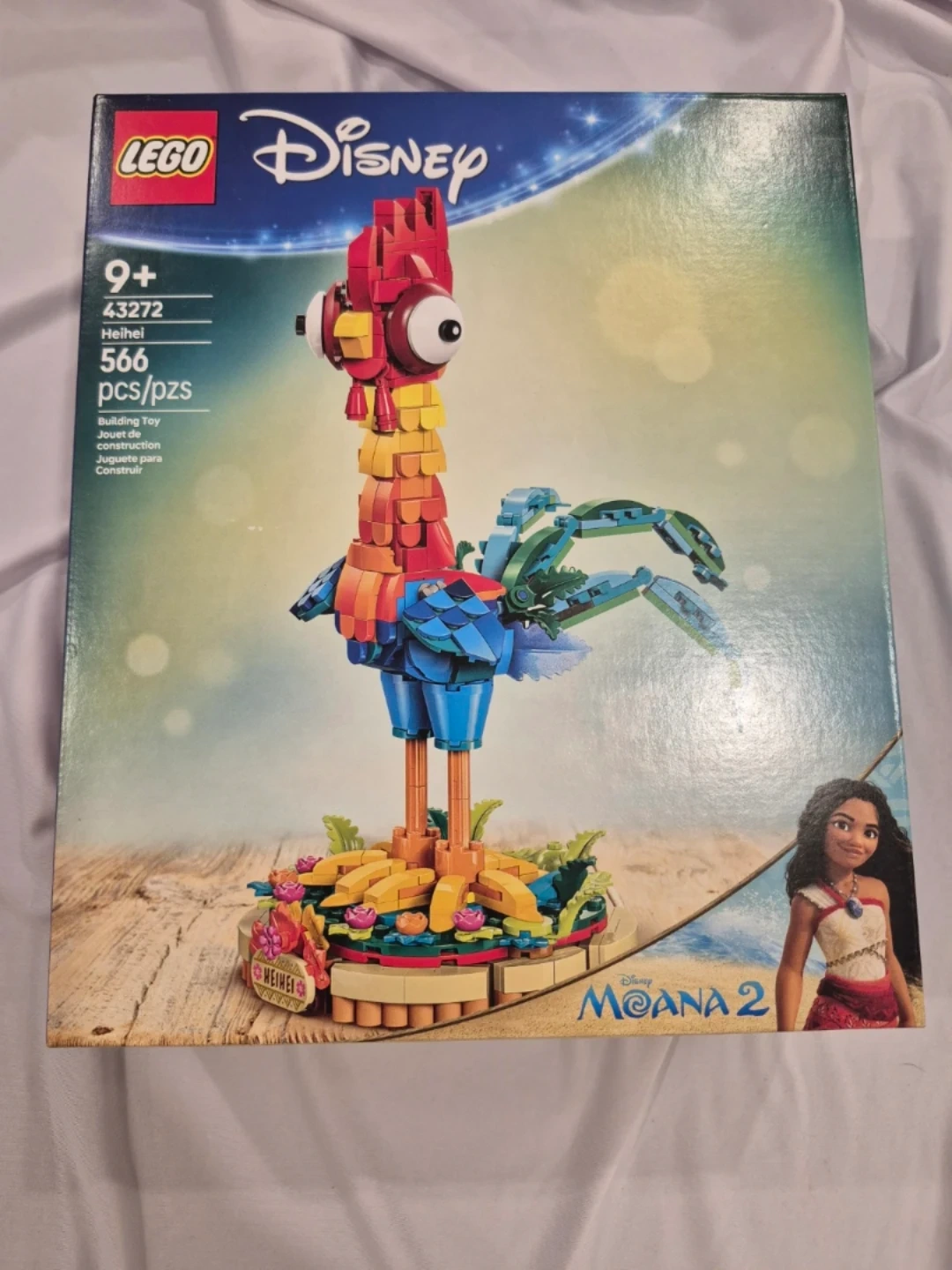 This LEGO Disney Moana 2 set features Heihei with 566 pieces. It's a building toy for ages 9+. Kids can recreate scenes from the movie with this fun set!