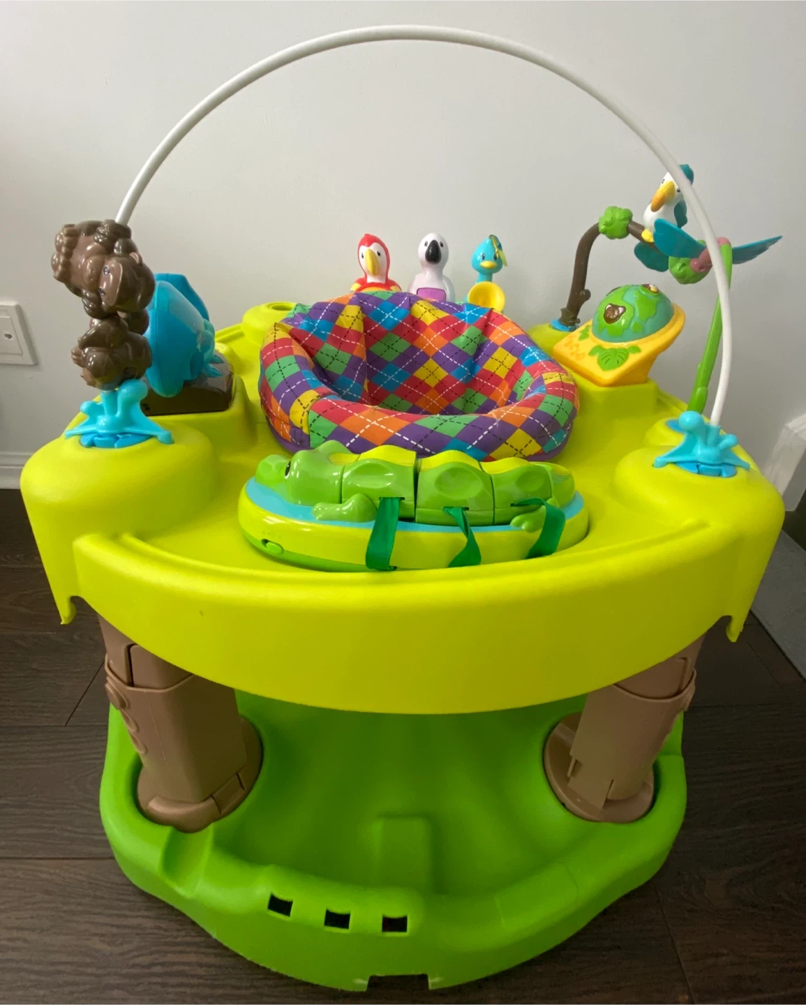 This Baby Einstein jumper has lots of fun toys to keep your little one entertained. It features a rotating seat and a colourful activity centre. Great for sensory exploration and motor skill development!
