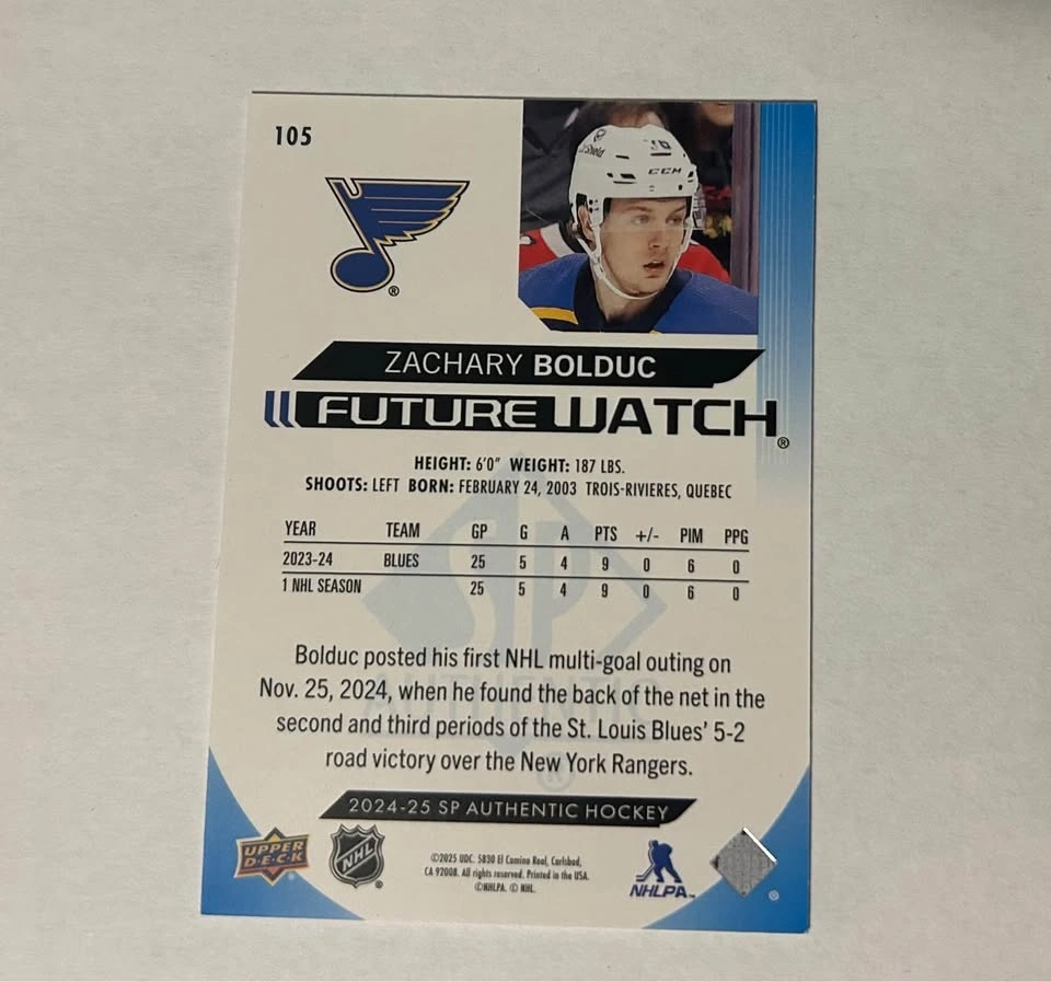 Buy & Sell2024-25 SP Authentic Zachary Bolduc Future Watch /3992024-25 SP Authentic Zachary Bolduc Future Watch /399$10Each card will come in a penny sleeve and top loader.WHERE TO MEETHomeView MapSELLERverifiedTylenWolseley1074 reviews0 chats·0 favorites·3 viewsSEND CHAT TO SELLERHi Tylen! I’m interested in your listing.Hi Tylen! I’m interested in your listing.Get the Karrot app to chatSign In to chat