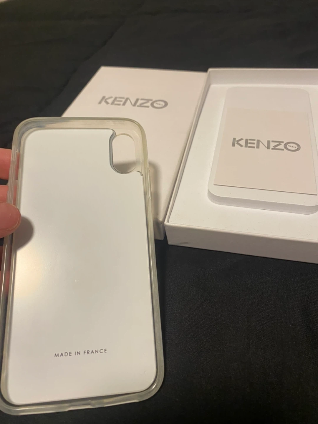 This KENZO Paris phone case features the iconic tiger design. It's made in France and comes with its original box. Protect your phone with this stylish accessory!
