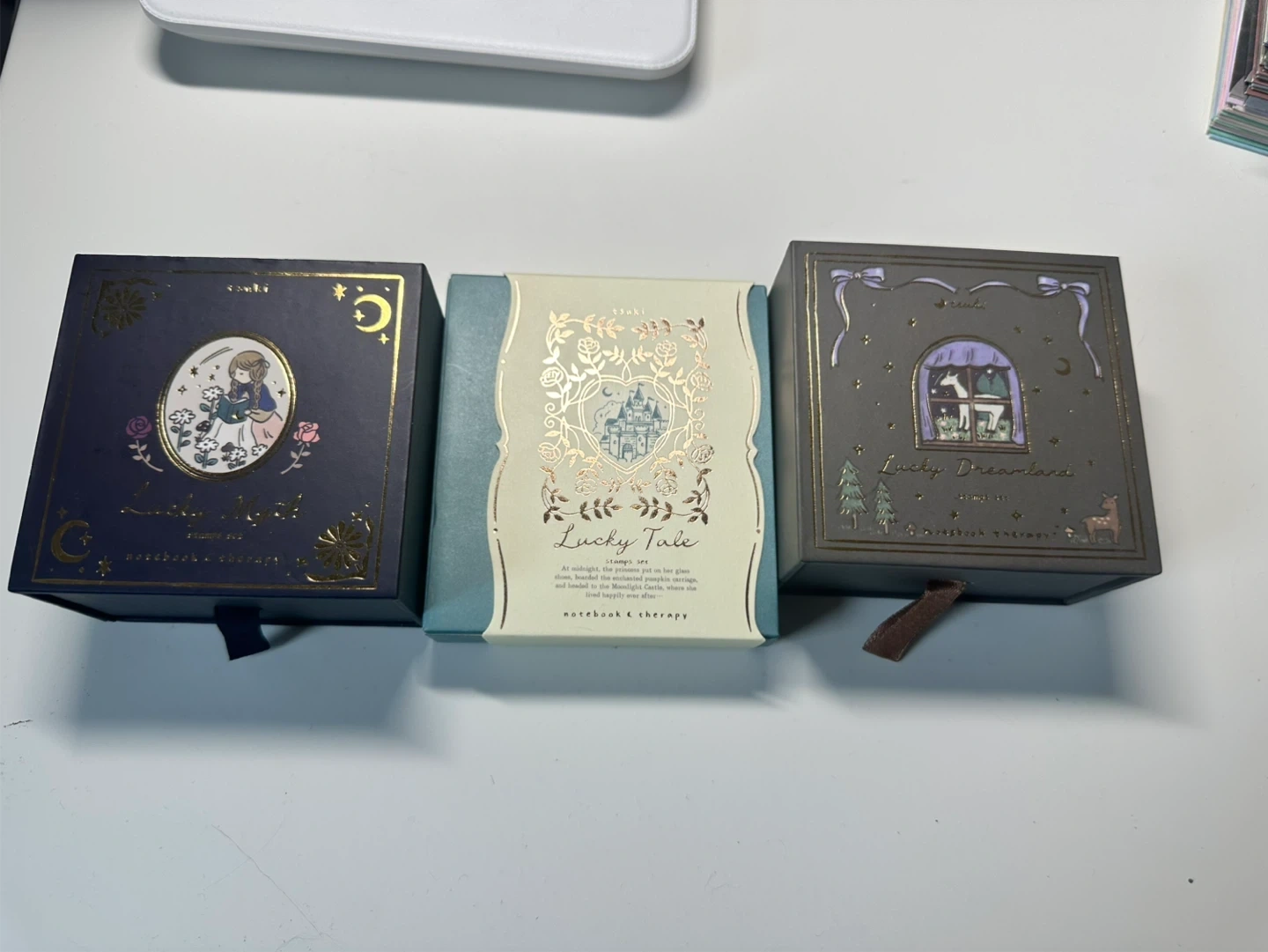 Three enchanting stamp sets from Notebook Therapy, featuring celestial, fairytale, and dreamland themes. These are from the yearly Lucky Bag (2023, 2024 and 2025).