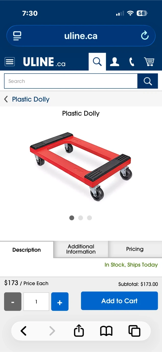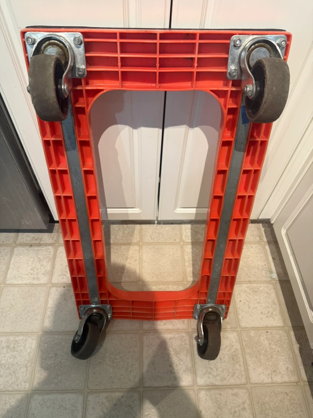 Orange Plastic Dolly with Wheels
