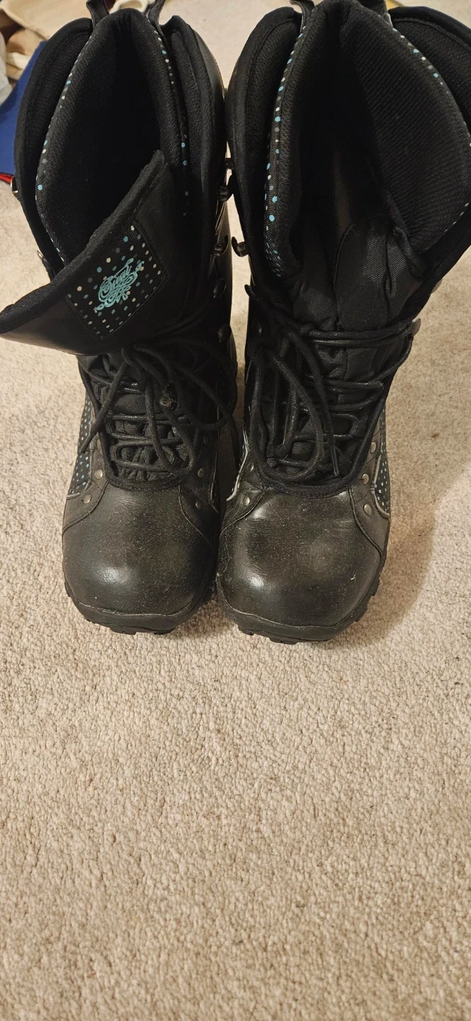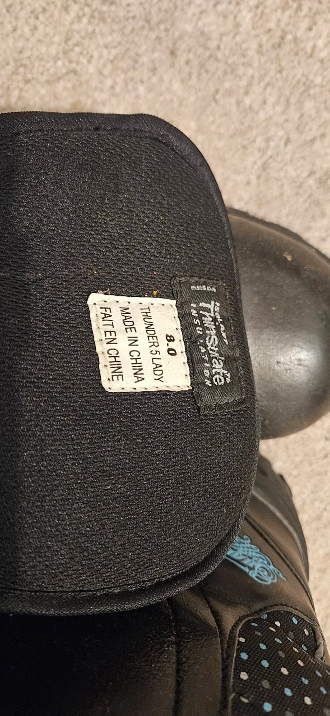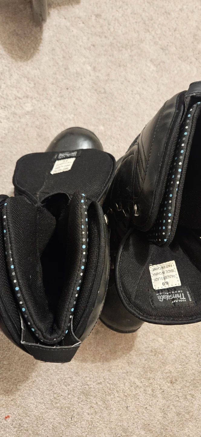 These black winter boots are insulated with Thinsulate. They're a women's size 8. Made in China.