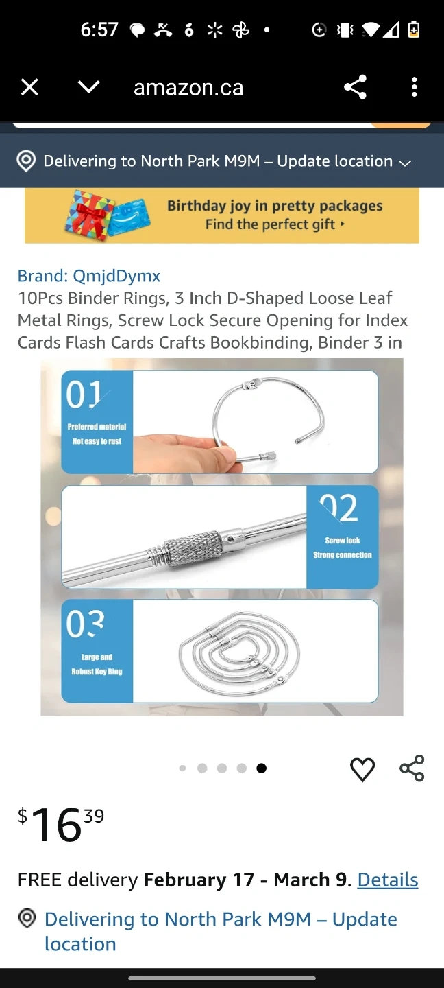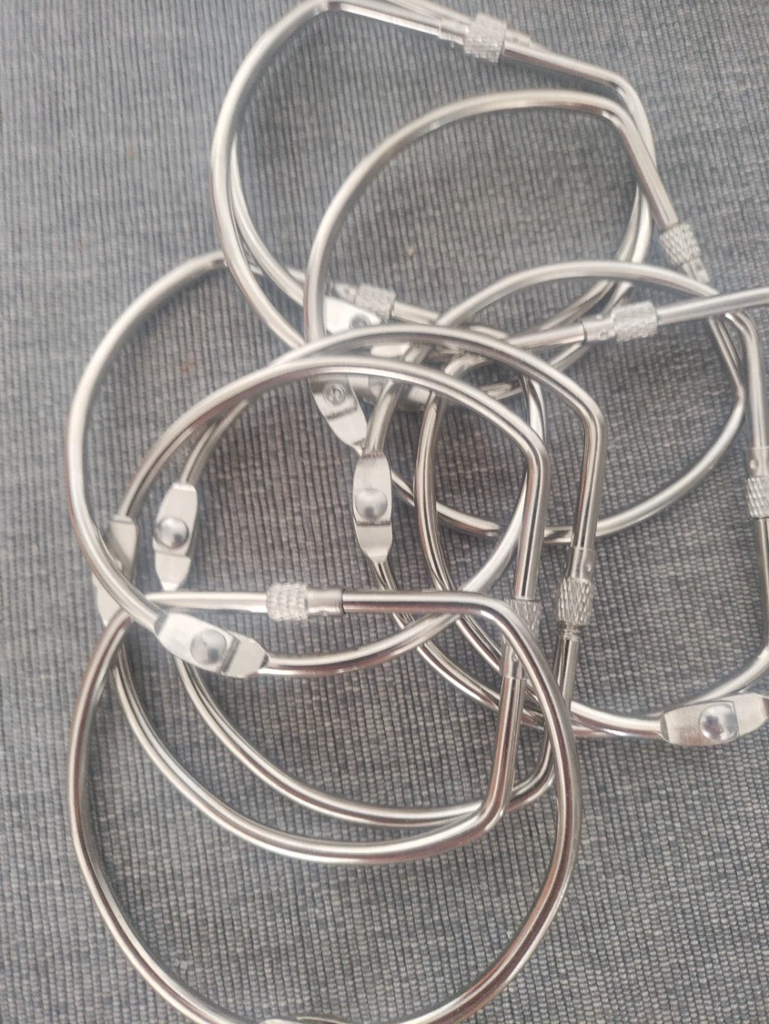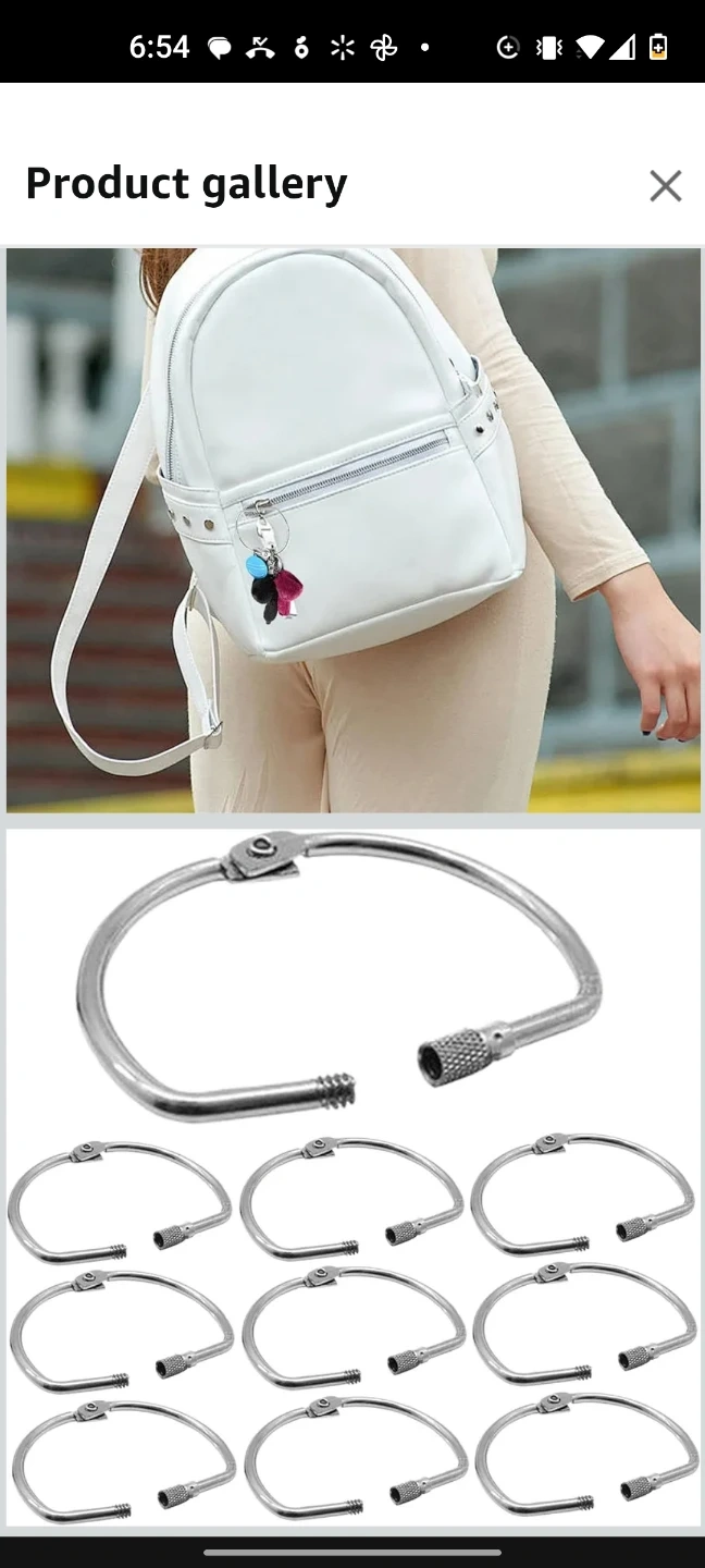 This is a set of 10 loose-leaf binder rings. They are D-shaped and made of metal with a screw lock closure. The rings are 3 inches in size and 0.38cm thick. These are great for crafts and bookbinding!