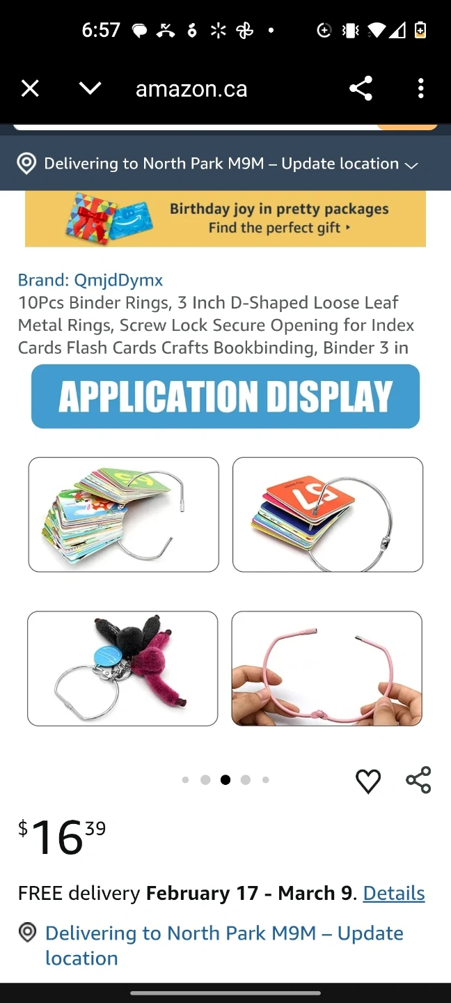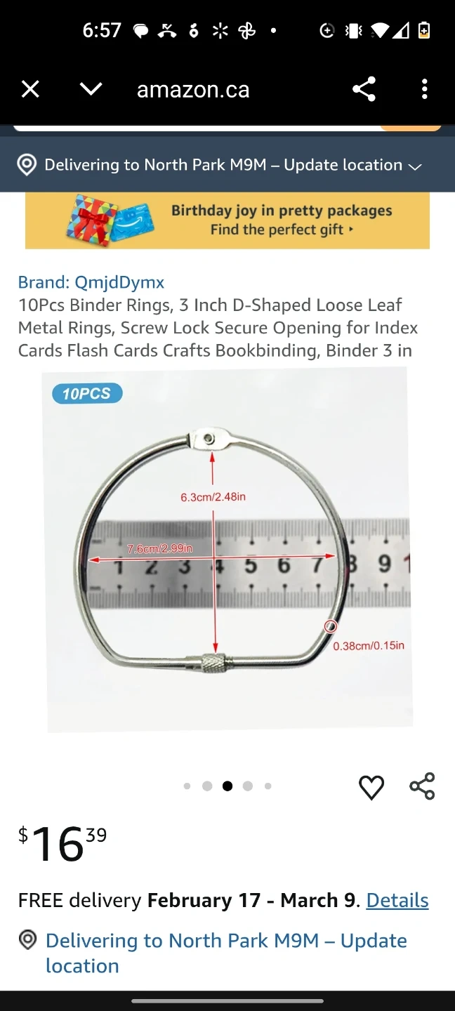 This is a set of 10 loose-leaf binder rings. They are D-shaped and made of metal with a screw lock closure. The rings are 3 inches in size and 0.38cm thick. These are great for crafts and bookbinding!
