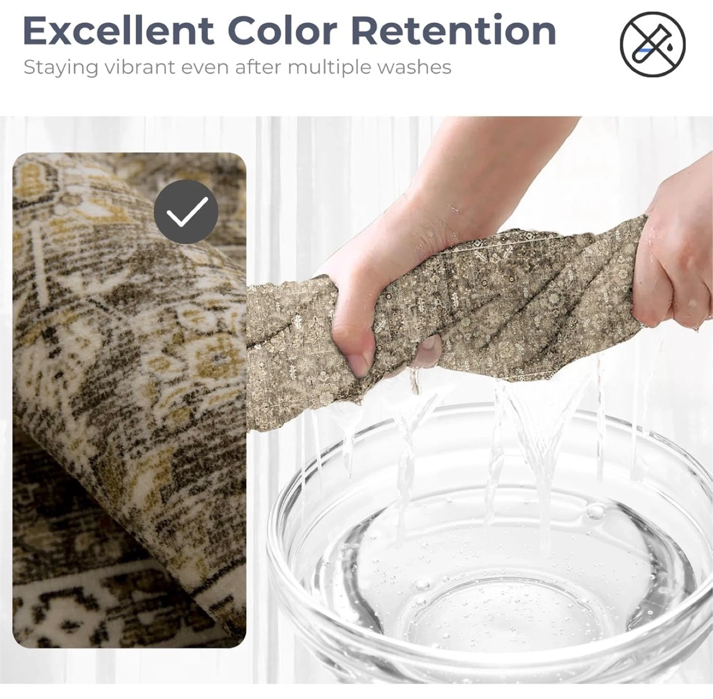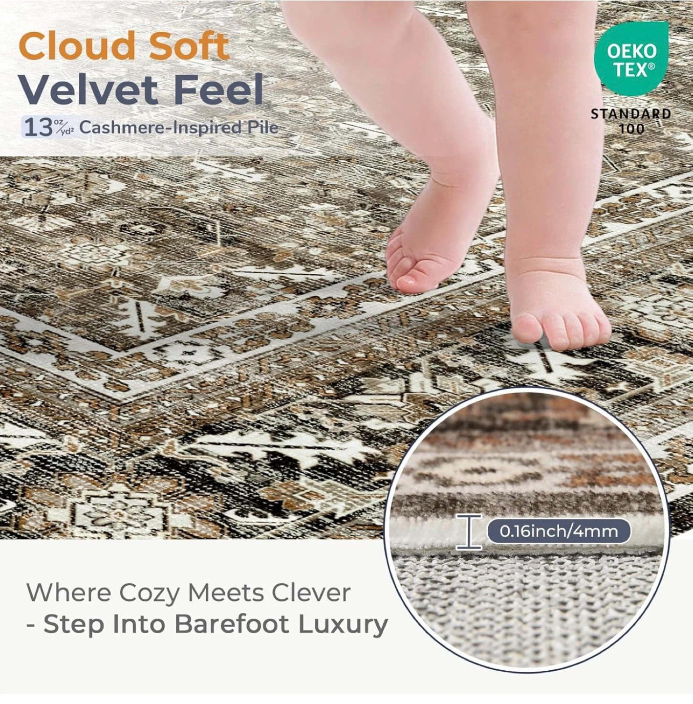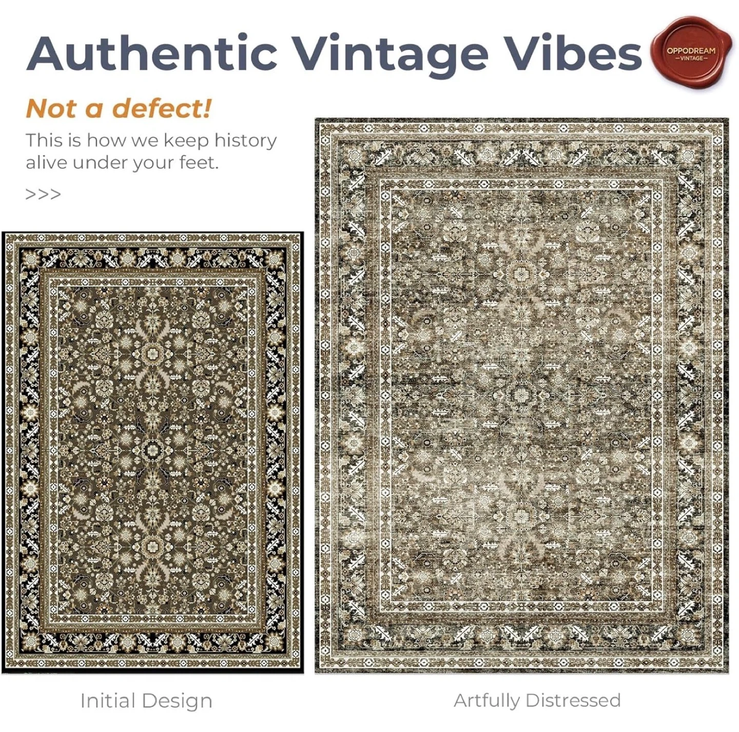 This Oppodream area rug features a distressed vintage design for an authentic look. It's made with a cloud soft velvet feel and has a cashmere-inspired pile. The rug's pile height is 0.16inch/4mm and it boasts excellent color retention, staying vibrant after multiple washes. It also comes with a TPR gripper backing to stay flat and slip-free!