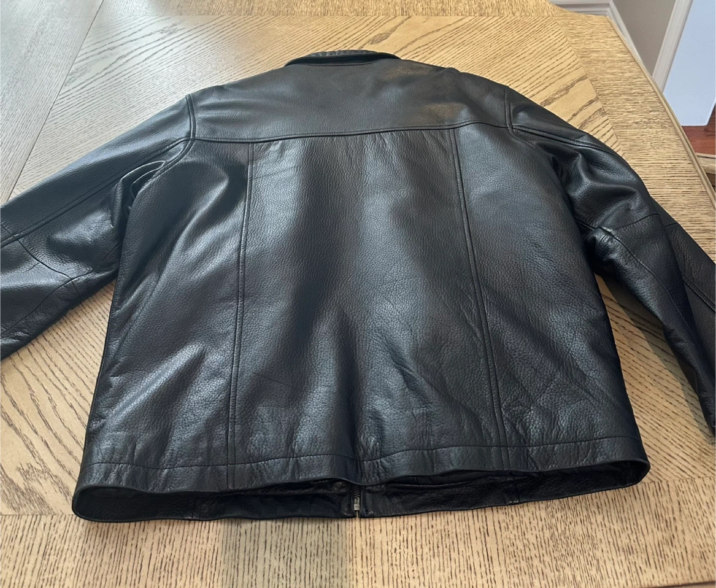 Denver Hayes black faux leather jacket with a quilted lining. It features a zip-up front and two front pockets. This jacket is insulated for added warmth. Also has 2 inside pockets for phone/wallet. Excellent condition and only work a few times.