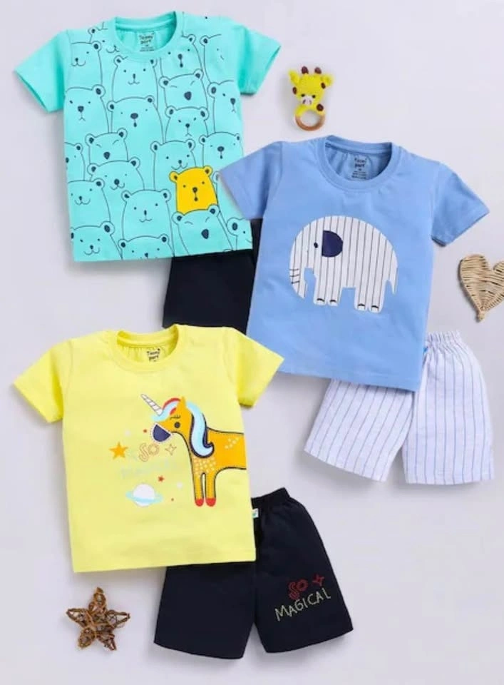 Brand New Toonyport Boys Pack Of 3 Cotton Shirts with Shorts Set