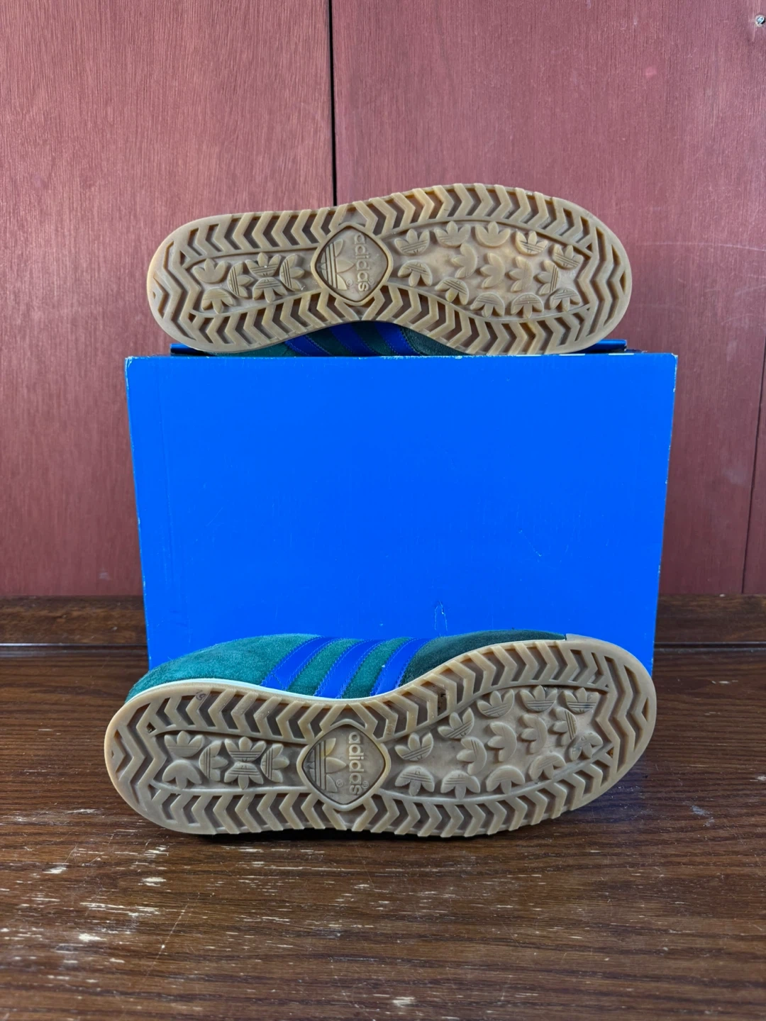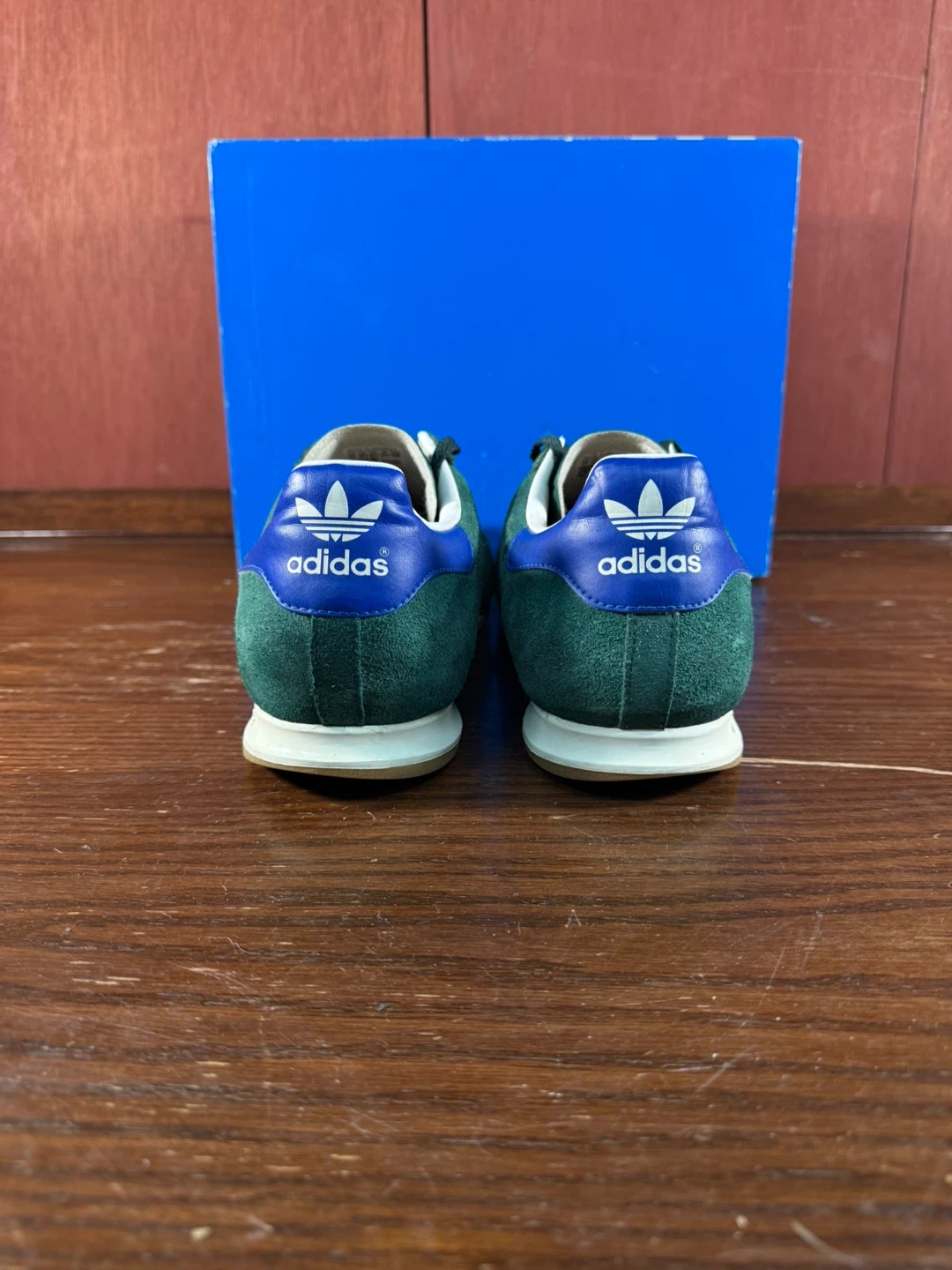 Get ready to step up your shoe game with these stylish Adidas AllTeam trainers in men's size US 11. Featuring a classic design with collegiate green suede and blue accents, these shoes are in great used condition as seen in the photos. Perfect for casual wear or adding a vintage touch to your outfit.