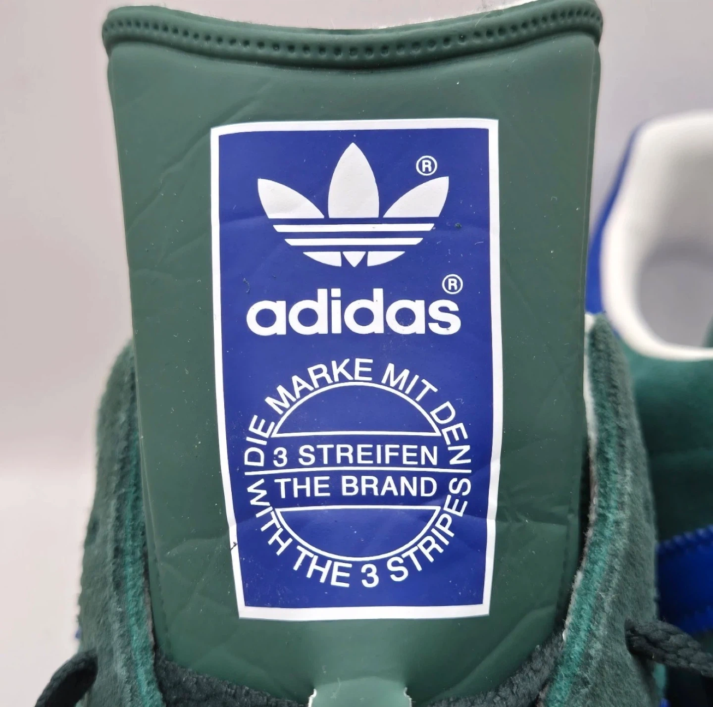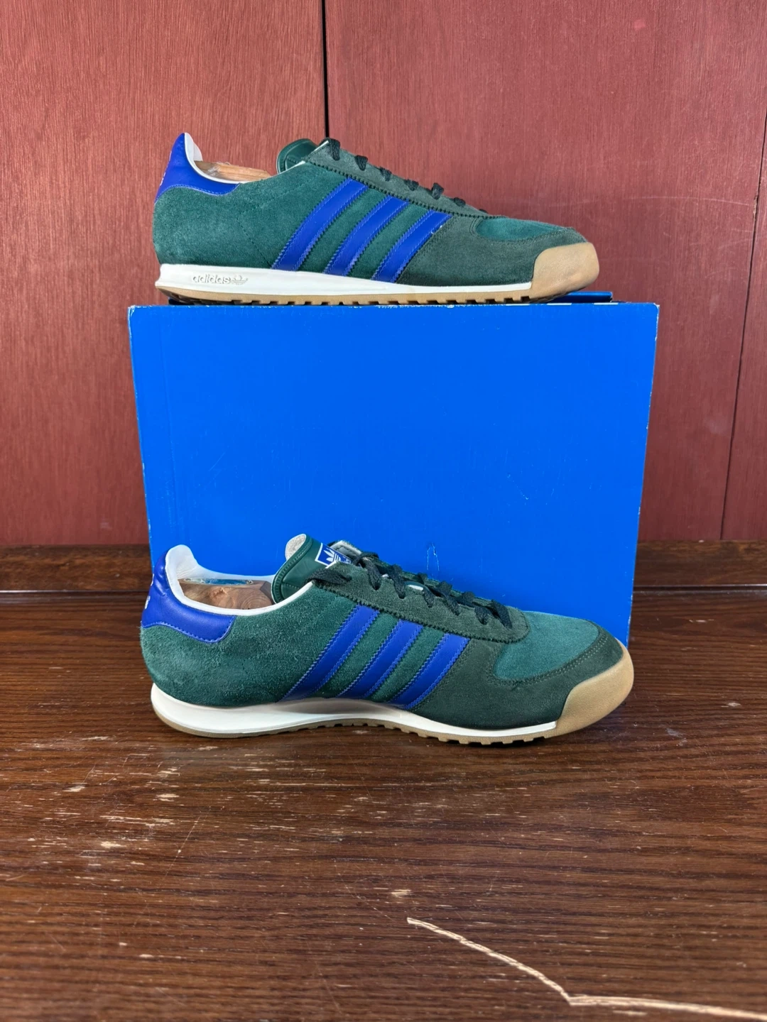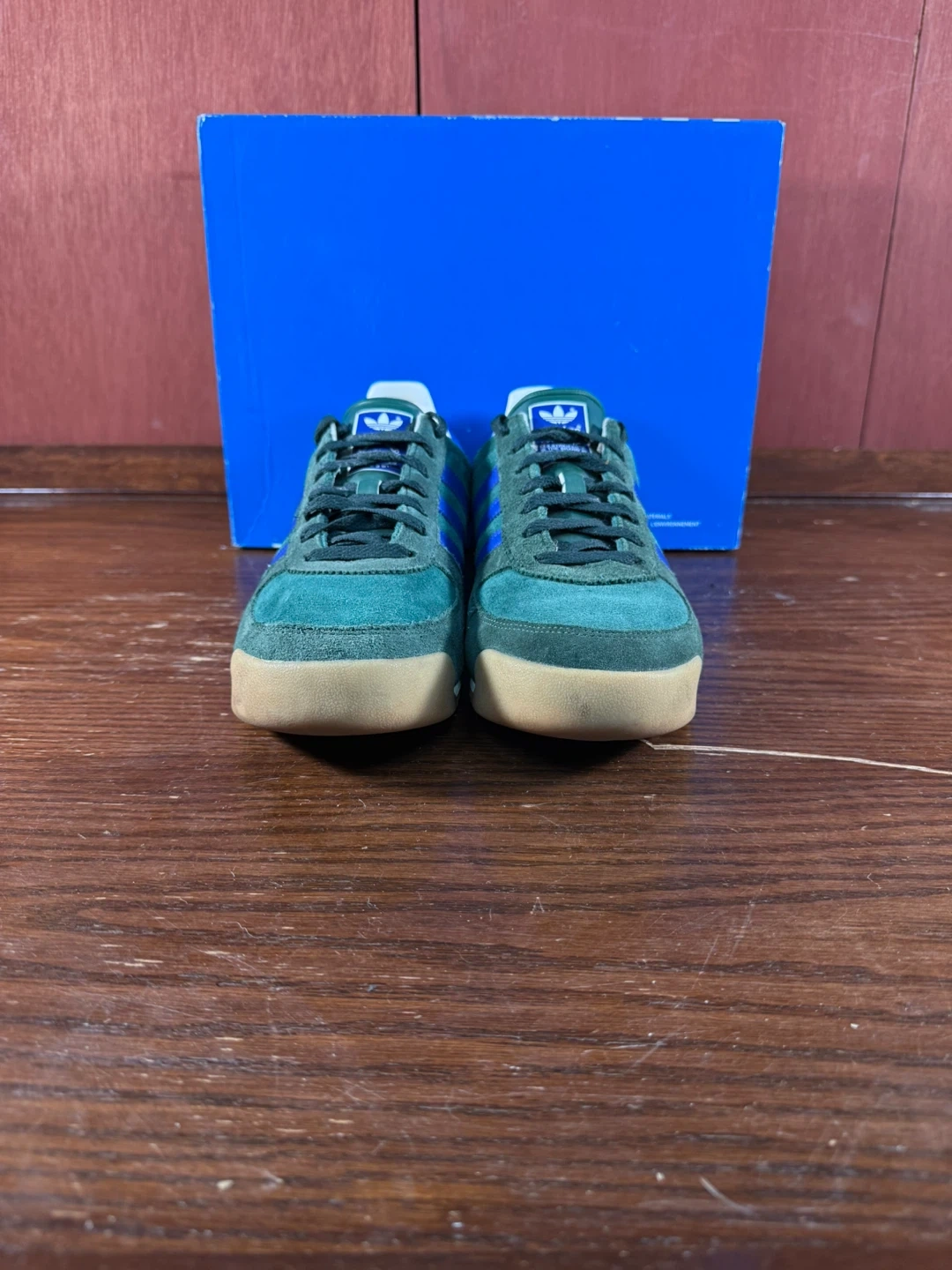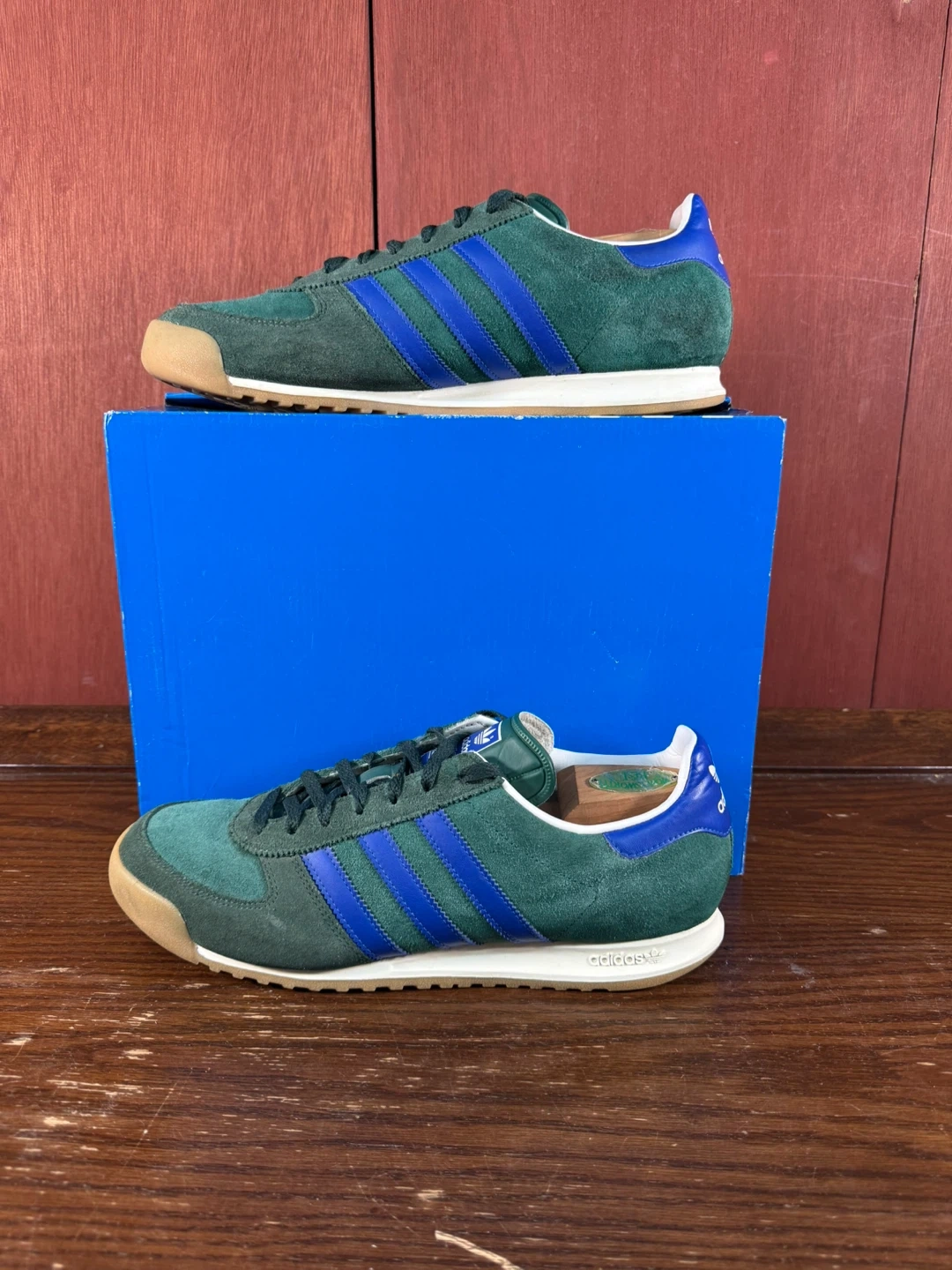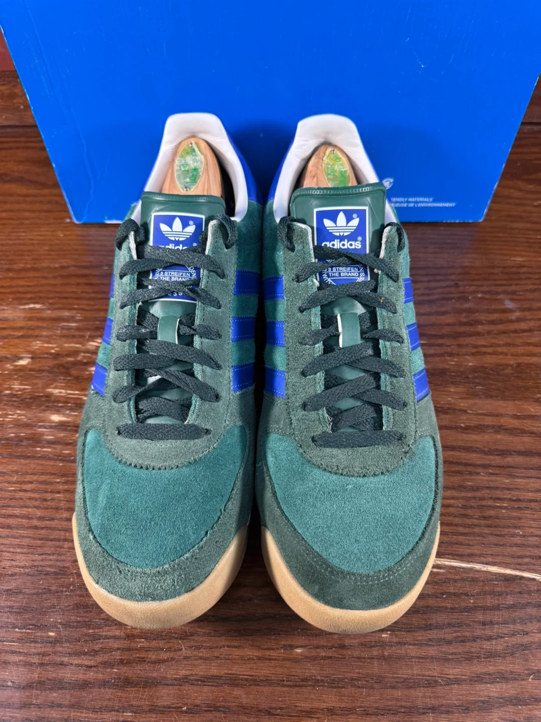 Get ready to step up your shoe game with these stylish Adidas AllTeam trainers in men's size US 11. Featuring a classic design with collegiate green suede and blue accents, these shoes are in great used condition as seen in the photos. Perfect for casual wear or adding a vintage touch to your outfit.
