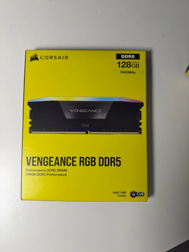 Buy & Sell128GB Corsair Vengeance RGB DDR5 RAM 6400MHz128GB Corsair Vengeance RGB DDR5 RAM 6400MHz$1,299Brand new in box. 2x64GB sticks, 6400MHz speed, CL42 latency.WHERE TO MEETCheck LocationView MapSELLERverifiedJamesHillcrest Village1004 reviews0 chats·2 favorites·27 viewsSEND CHAT TO SELLERHi James! I’m interested in your listing.Hi James! I’m interested in your listing.Get the Karrot app to chatSign In to chat