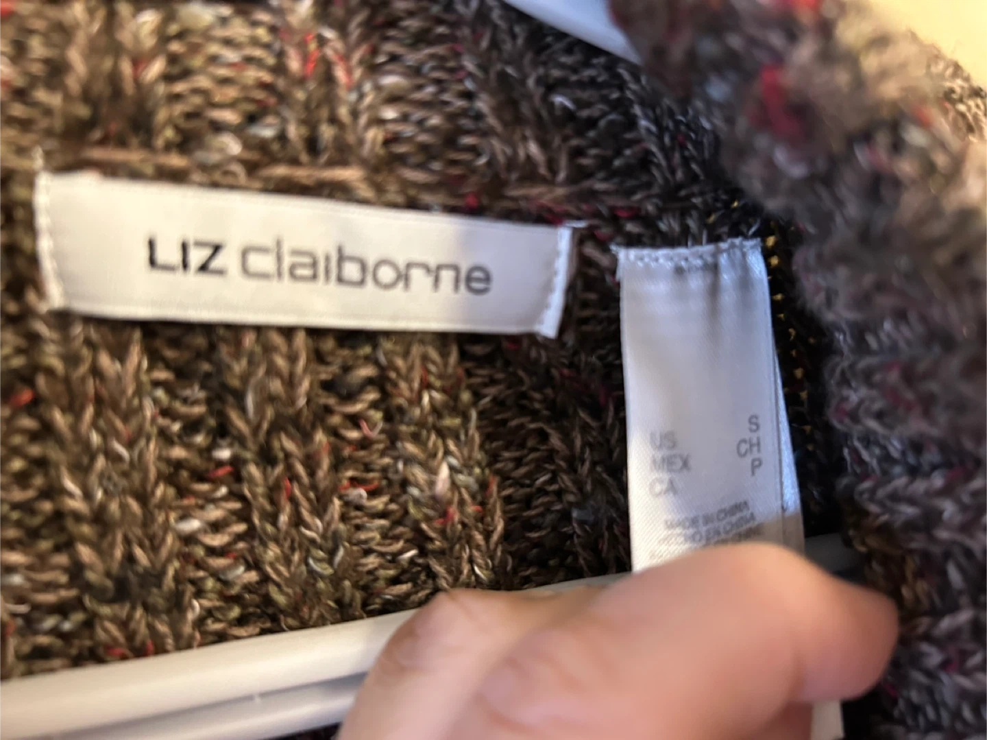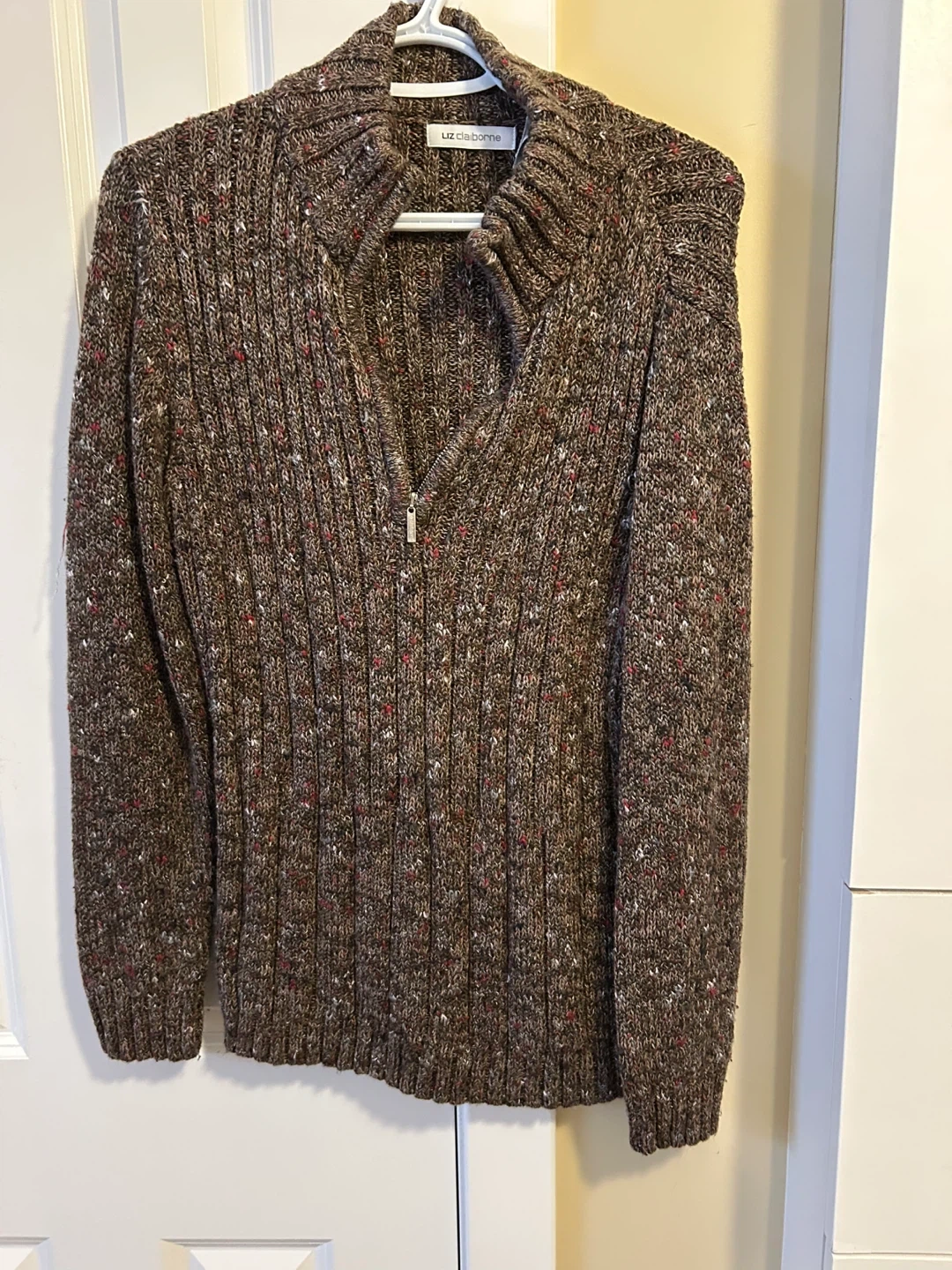 Buy & SellLiz Claiborne Women's Quarter-Zip Sweater - Size SLiz Claiborne Women's Quarter-Zip Sweater - Size S$15This is a Liz Claiborne quarter-zip sweater. It's a size small. The knit is a speckled brown with flecks of red and white.ConditionLike newSizeSBrandLiz ClaiborneWHERE TO MEET2511 18 street nwView MapSELLERverifiedBettinaCapitol Hill841 review0 chats·1 favorites·9 viewsSEND CHAT TO SELLERHi Bettina! I’m interested in your listing.Hi Bettina! I’m interested in your listing.Get the Karrot app to chatSign In to chat